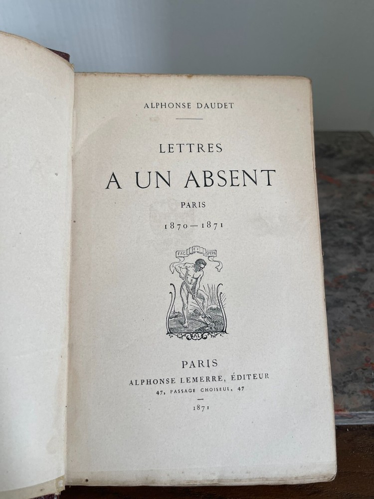 Antique Book 1871 - Daudet Letter To An Absent 1870 1871 Ed Alphonse Lemerre The description of this item has been automatically translated. If you have any questions, please feel free to contact us. Product If you are interested in several products, please contact me to make a group shipment. /! \ The photos are an integral part of the description, please read the description & the state to avoid unpleasant surprises at the reception. Trust our commitment to excellence, because your satisfaction is our absolute priority. Back Take advantage of total peace of mind with our flexible return policy. You have 30 days to return your product, in its original state. Get a return permit number by contacting our customer service, then ship the product. We treat reimbursements quickly. Consult our feedback conditions for more details. Sincerely, Telmoni house Product If you are interested in several products, please contact me to make a group shipment. /! \ The photos are an integral part of the description, please read the description & the state to avoid unpleasant surprises at the reception. Trust our commitment to excellence, because your satisfaction is our absolute priority. Back Take advantage of total peace of mind with our flexible return policy. You have 30 days to return your product, in its original state. Get a return permit number by contacting our customer service, then ship the product. We treat reimbursements quickly. Consult our feedback conditions for more details. Sincerely, Telmoni house Auteur Alphonse Daudet Type Standard Reliure Cuir Reliure Relié Signée Non Langue Français Personnalisé Non Époque XIXème Sujet Biographies, mémoires