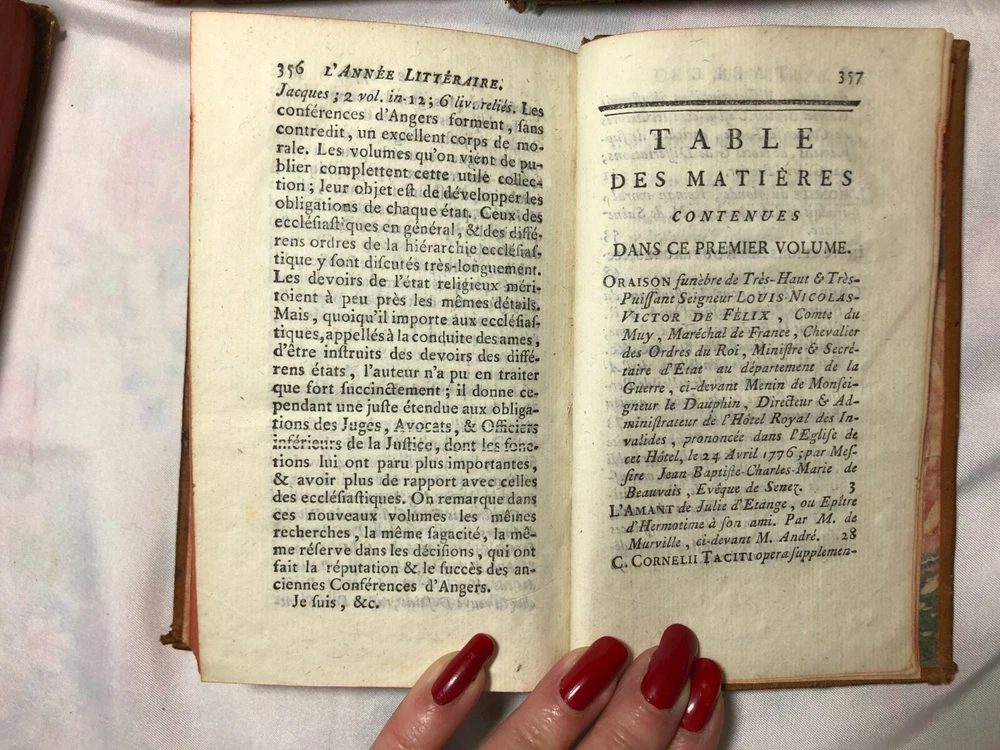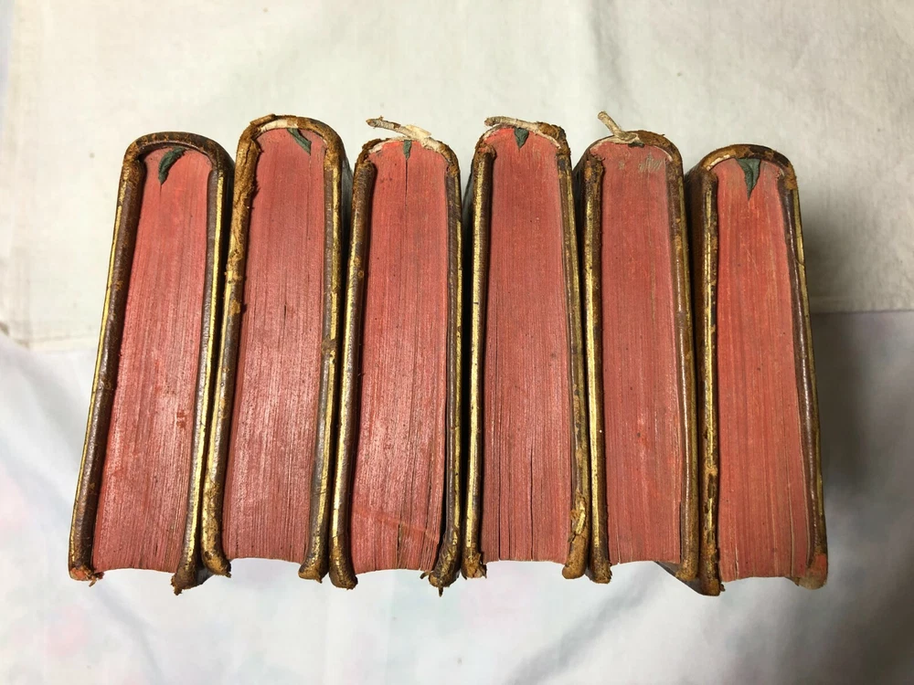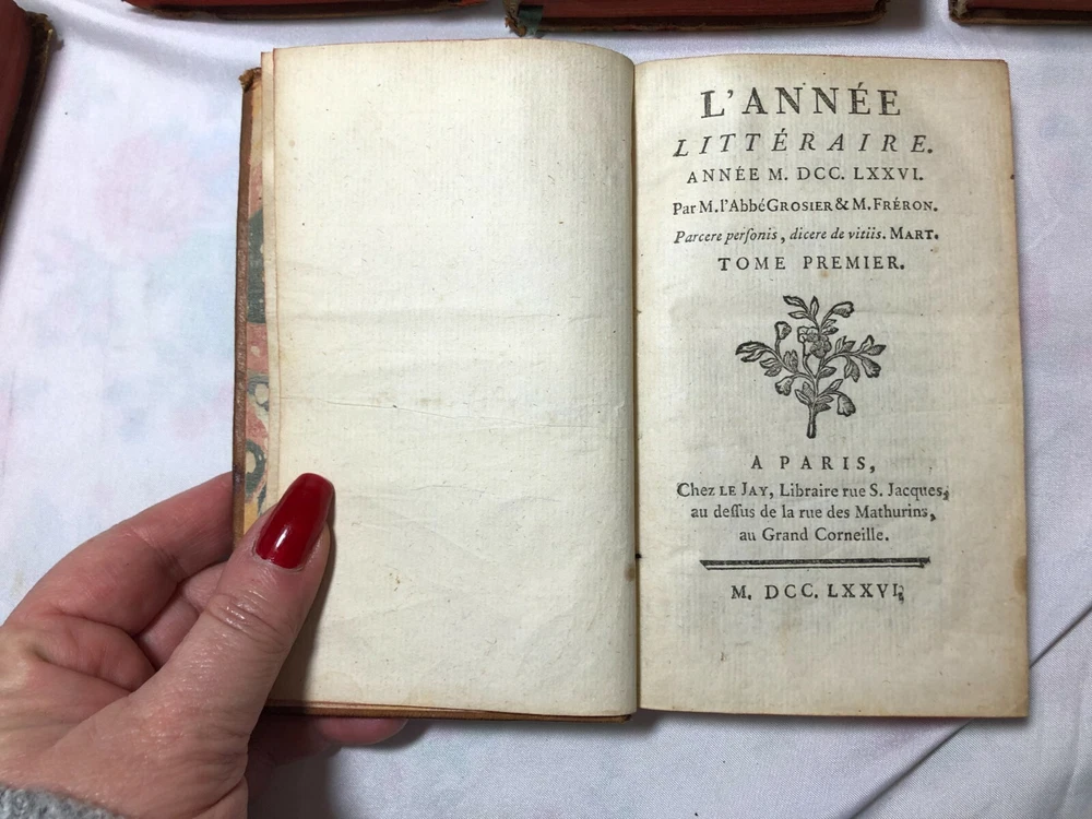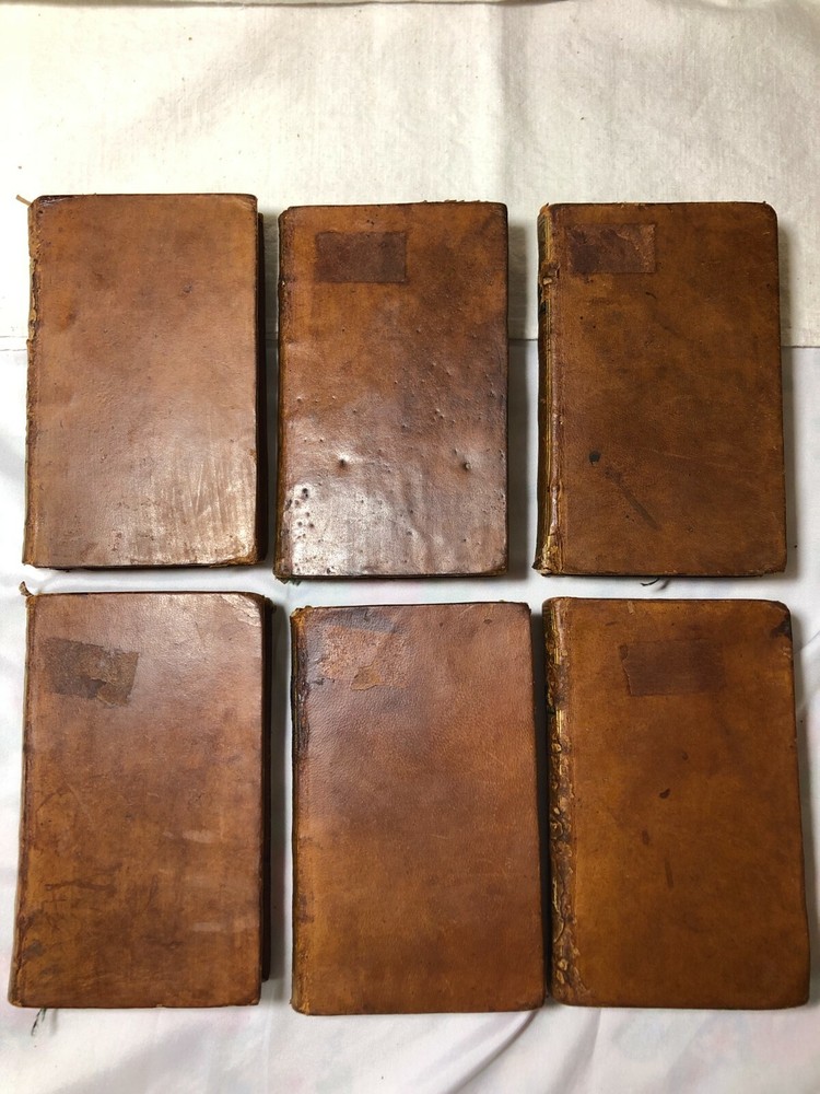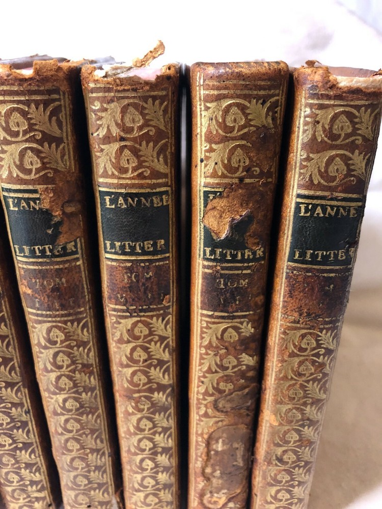 Antique French Set 6 L'Année Litteraire The Literary Year Leather Bound Books Date 1776 Printed 13 years before the French Revolution, 246 years old. " L'Année Litteraire" (The Literary Year. Printed in 1776 (the year of American Independence) and written by M Abbot Grosier & M Freron, in PARIS. There are 6 volumes or "Tomes" which include Tome 1, 2, 3, 5, 7 and 8 - it appears No 4 and 6 are missing from a set of 8. 360 pages to each book printed in French including a couple of pages of "Tables" to the back of each one. Each one has a blue silk ribbon page keeper. Condition report: Leather binding is worn although the gold gilding is in remarkable condition, and each book appears to have had some type of library label that was once stuck on to the front. Every page has yellowed over the passage of time with some foxing - see all photographs. No missing pages or rips or tearing. Measurements: Closed - Length - just under 16 cms Width - 9.1/2 cms Weight - 1.4 kilos before careful packaging POSTAGE Postage quoted is for "Colissimo International, signed and tracked". La Poste is not the fastest service in the world, but is reliable. PLEASE REMEMBER I AM POSTING FROM FRANCE - please allow 1-2 weeks for the UK and Europe and 3-4 weeks for the rest of the world, although normally a lot faster. We do not charge for our very careful packing. WE POST WORLDWIDE. PLEASE READ We are keen to keep our excellent feedback. If you have a problem or query please contact us first before leaving negative or neutral feedback. Customer service is utmost priority.