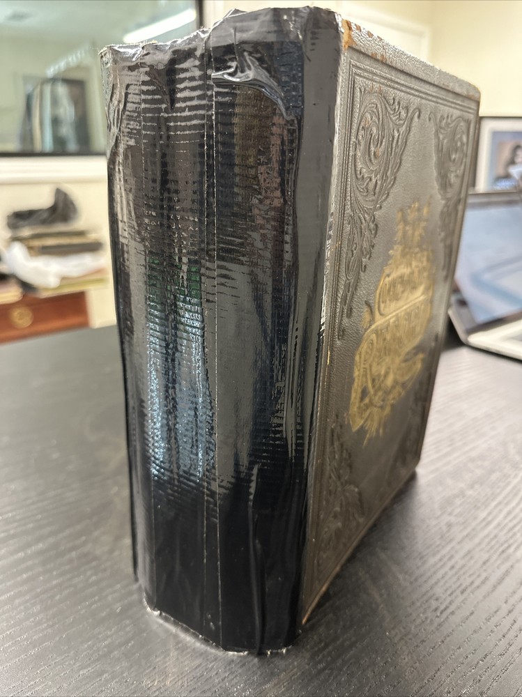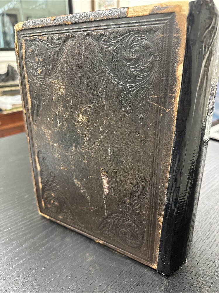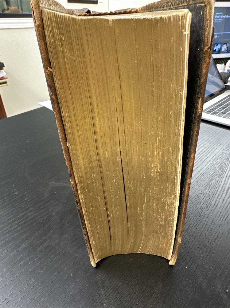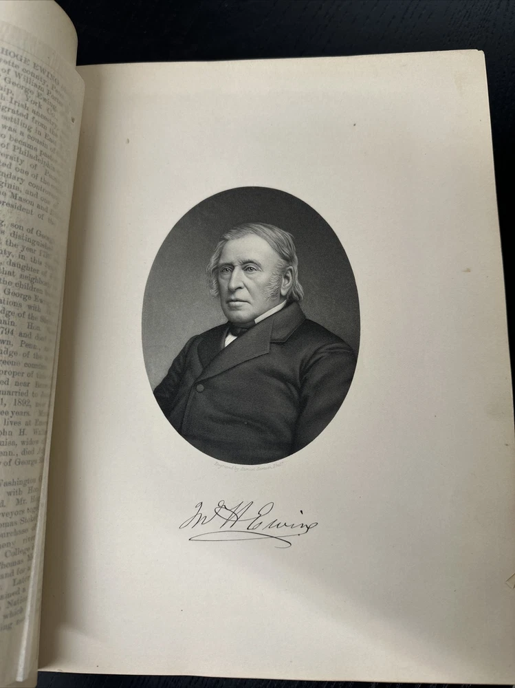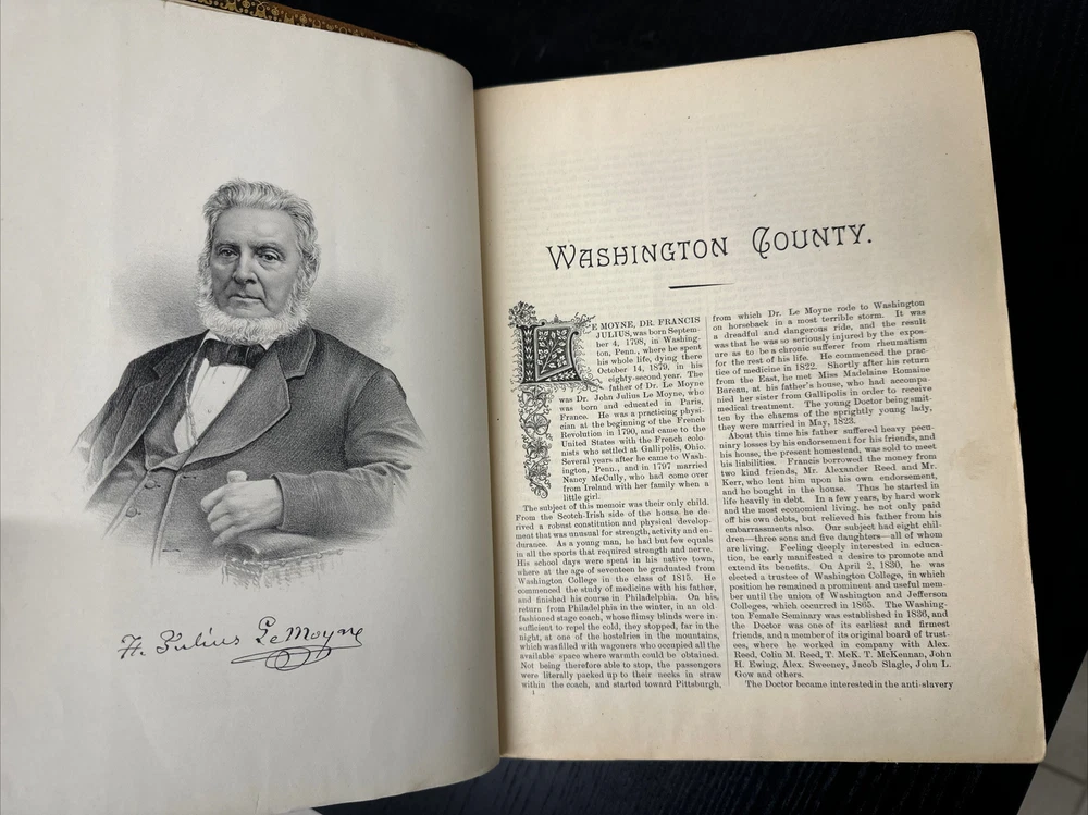 This is a beautiful leather-bound book published in the United States in 1893. It features biographies of settlers and prominent citizens in Washington County, Pennsylvania, and is a rare and collectible first edition. The book is illustrated with special attributes that make it an exceptional addition to any collection. The publisher, J.H. Beers & Co., is known for producing high-quality historical literature. This book is an original and a true piece of history. Binding was repaired by non-professional….duct tape fixes everything, right? Engraved leather front and back cover is in pretty decent condition co side ring the age of the book. Gilt edging on pages is still bright. Contains over 150 engraved portraits and signatures of the volume’s subjects. Please review photos for condition.