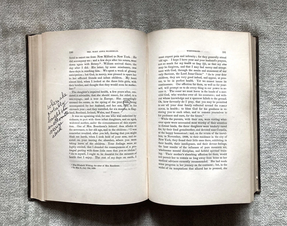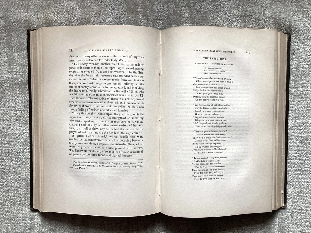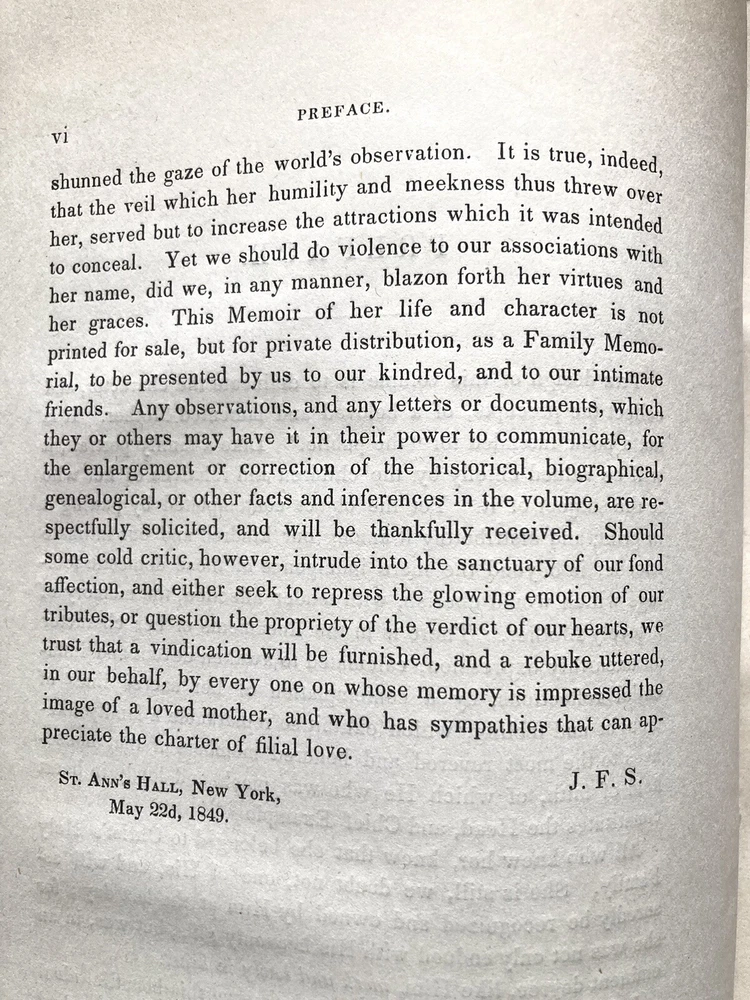 This rare 1849 memoir offers a fascinating glimpse into early American life through the eyes of Mary Anna Boardman. The well-preserved 478-page volume features clean pages with minimal toning and sturdy binding in decorative embossed boards. Beyond its excellent condition, the content shines—detailing genealogy, religious practices, and daily experiences while connecting to prominent historical figures. The extensive family networks and cultural insights make this scarce book a treasure for history enthusiasts. A couple minor board spots don’t distract from its overall charm. A remarkable find for collectors of early American narratives!