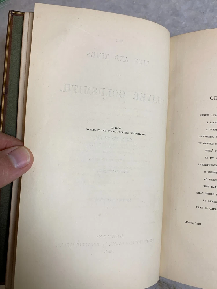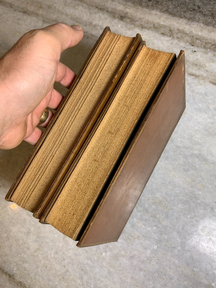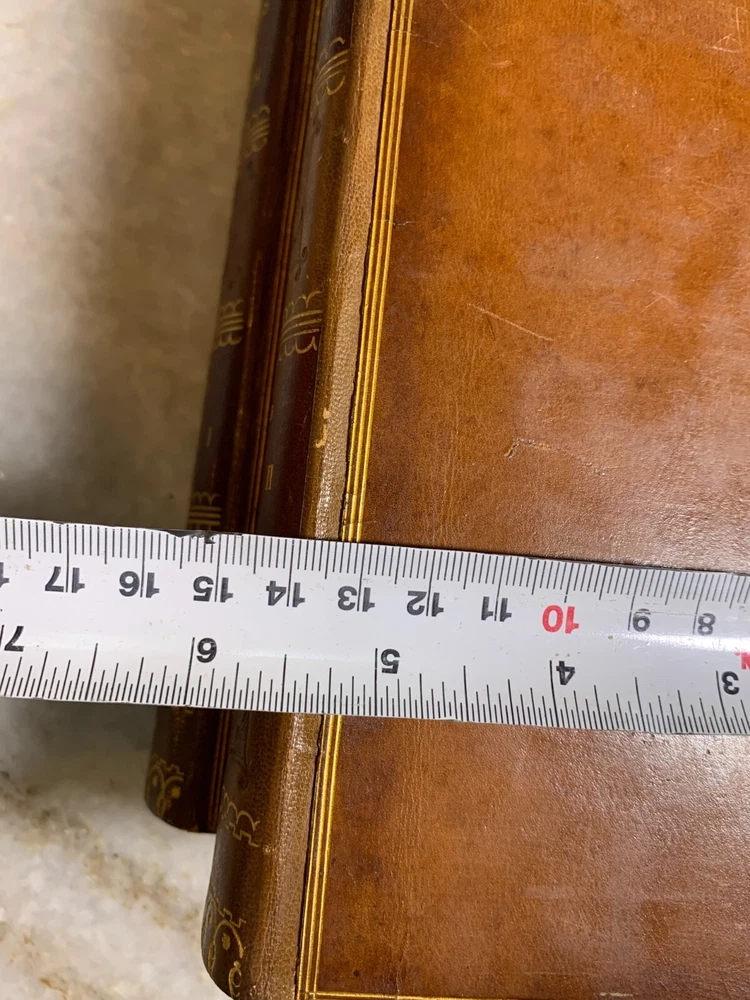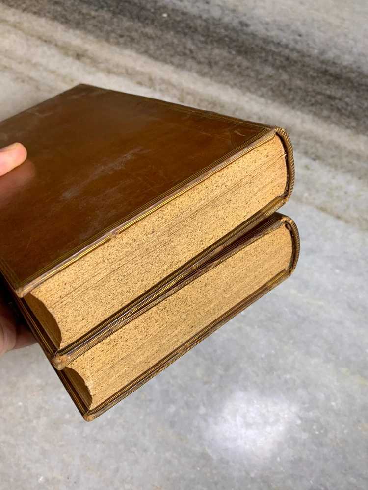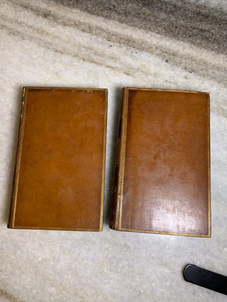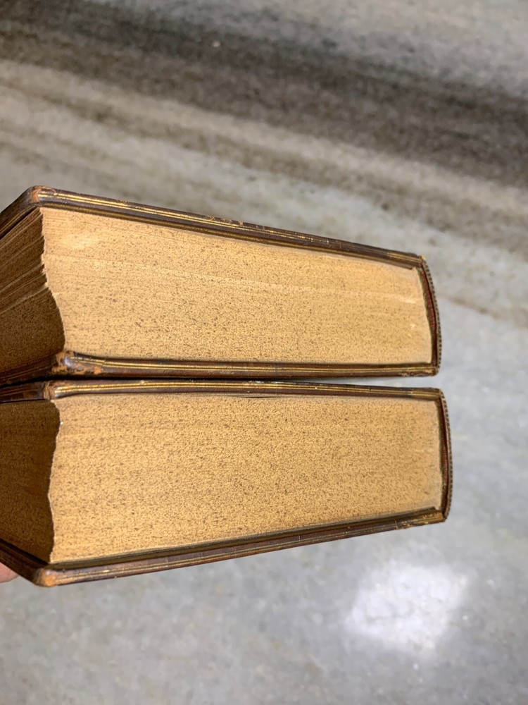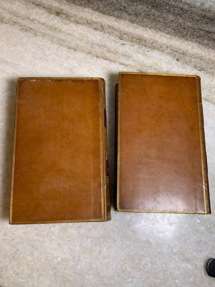 Excellent condition. 170+ years old (These are older than the civil war, before Abrham Lincoln's first time etc...) Stunning binding with embossing, gilding, leather... Shelf Bling! Bling! Shelf Art. 8.75" T x 5.75" W Inscription on the first page of one volume. Printed by Bradbury and Evans of London. I package well and ship out daily!