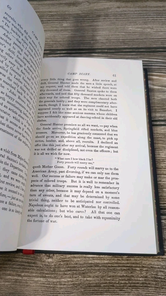 Created with Eselt - Responsive Templates for eBay Sellers Alexander's Books&Pages Send us a message Created with Eselt - Responsive Templates for eBay Sellers Our Store Seller Profile Feedback About us Contact Created with Eselt - Responsive Templates for eBay Sellers Alexander's Books and Pages presents ... Higginson, Thomas W. , Army Life in a Black Regiment , Time Life Books, 1982, Leather Bound Hardcover, 296 pages. All fore edges are gilted. Some scratching of foot fore edge gilt. Binding is tight. Pages are unmarked with no apparent writing, underlining, or highlighting. Buying more than one book from my shop? Order multiple books, save on shipping. Each extra book only costs .75 cents in shipping fees! My name is Alexander and this is my bookshop. As a book lover I strive to give you a great experience when you order from my store. I never use stock photos nor cheap flimsy poly-bags. All my books ship securely in cardboard boxes. Also all my books ship with one day handling. No more waiting days for your book to finally ship out. Don't forget to check out other great deals in our eBay Store!! Created with Eselt - Responsive Templates for eBay Sellers Shipping Created with Eselt - Responsive Templates for eBay Sellers Links Our Store Seller Profile Feedback About us Contact More items Are you looking for something similar? See our other items! Show more items Contact Send us a message Created with Eselt - Responsive Templates for eBay Sellers