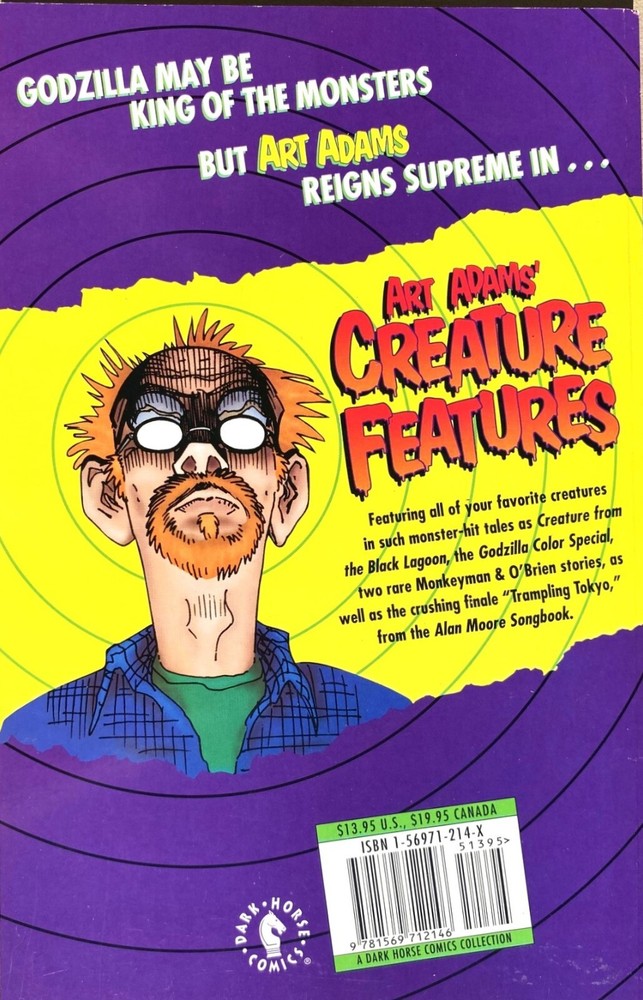 This trade publication by Dark Horse is 108 pages of comic artist Arthur Adams expressing his love for monsters. There is no other illustrator who gets off on drawing every scale, fang, claw, and tale as much as he does. If you like his work, you proably like his monsters. The two stars of this publication are the Gill Man (Creature from the Black Lagoon) and Godzilla, although Monkey-Man battles a mole man and his minions in a short story. Color. 10" by 6.5".