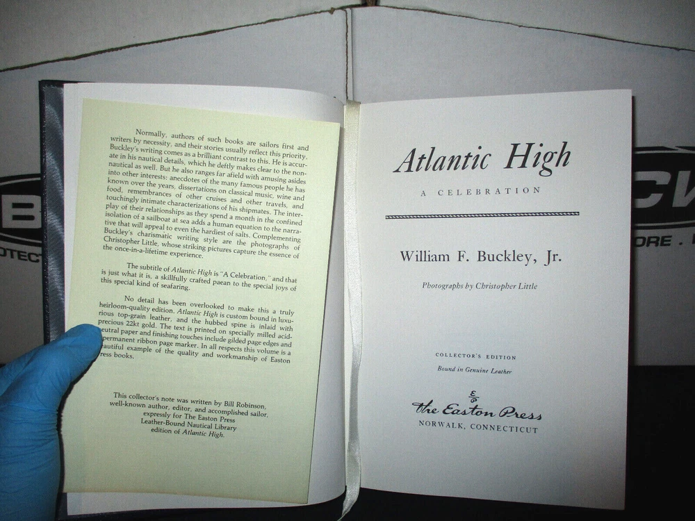 Atlantic High : A Celebration By William F. Buckley Collector's Edition Bound In Genuine Leather The Easton Press 1987 Good condition. New Books added every week! SEE PICTURES FOR FURTHER DETAILS. PLEASE EMAIL ANY QUESTIONS BEFORE MAKING AN OFFER. NO RETURNS BASED ON CONDITION. boilerplate stuff: I am a lifelong comics nerd, and this is from my private collection direct to you in order to support my continued consumption of all things marvel, dc, dark horse, image, titan, IDW, and beyond. This has been read at least twice ,but I take great care to ensure they remain in great condition. I am reluctant to mark anything as NM because even brand new off the wall comics often have blemishes and imperfections such as spine crease and dings. These are multiple read copies in very fine condition. All comics are bagged and boarded and shipped with appropriate packing material to ensure the fidelity of the merchandise. The PICTURES in this item are of the EXACT SAME ITEMS you will receive if won. I will report any nonpaying winners. All items are AS IS. No refunds. All sales are final. No international shipping. Please ask questions before making a bid. 5 stars please, I am doing everything in my power to make sure my customers are satisfied with their shopping experience. Any concerns problems, issues or trouble please contact me and allow me to help matters before leaving negative feedback. Payment is expected within 3 days of purchase via PayPal. After receiving payment I normally ship within 2-3 days (Mon-Sat). I use USPS priority shipping and carefully package items with the appropriate boxes, packing materials, bubble mailer envelopes, and etc as is appropriate to safeguard these valuables during transit. Be aware of shipping costs, Ebay fees to the seller, charges by paypal for their service, packing materials, the fuel used to transport the product to the carriers, and other variables can eat into the profit of these transactions sometimes up to 50% of the possible value provided by the piece. I have done my best to provide quality items on auction style listing; I am a single private seller trying to provide high quality items at a bargain level. Remember next time I may be the customer so please be courteous and respectful in your dealings and I will strive to do the same. Nonpayment will be reported. Thank you for your patronage, and have a nice day.