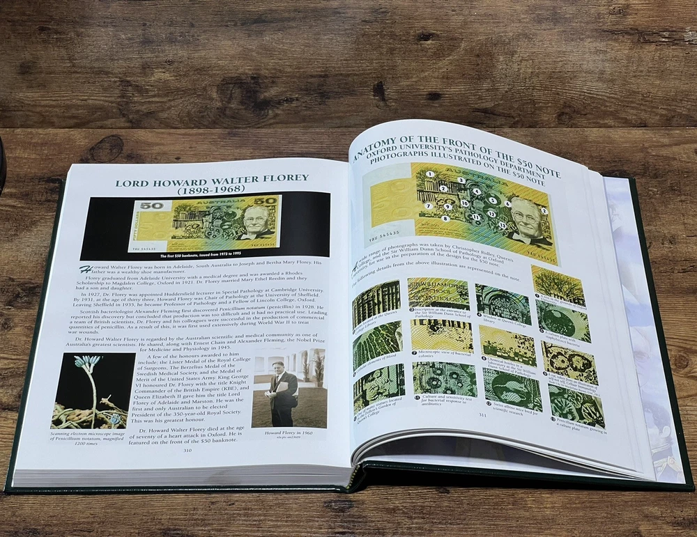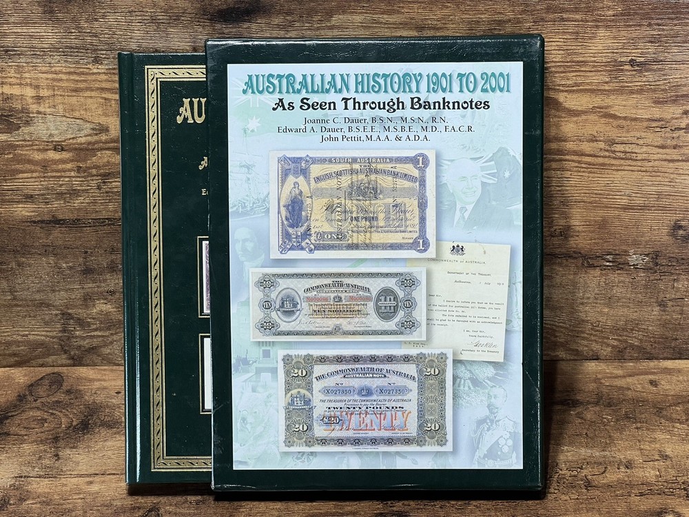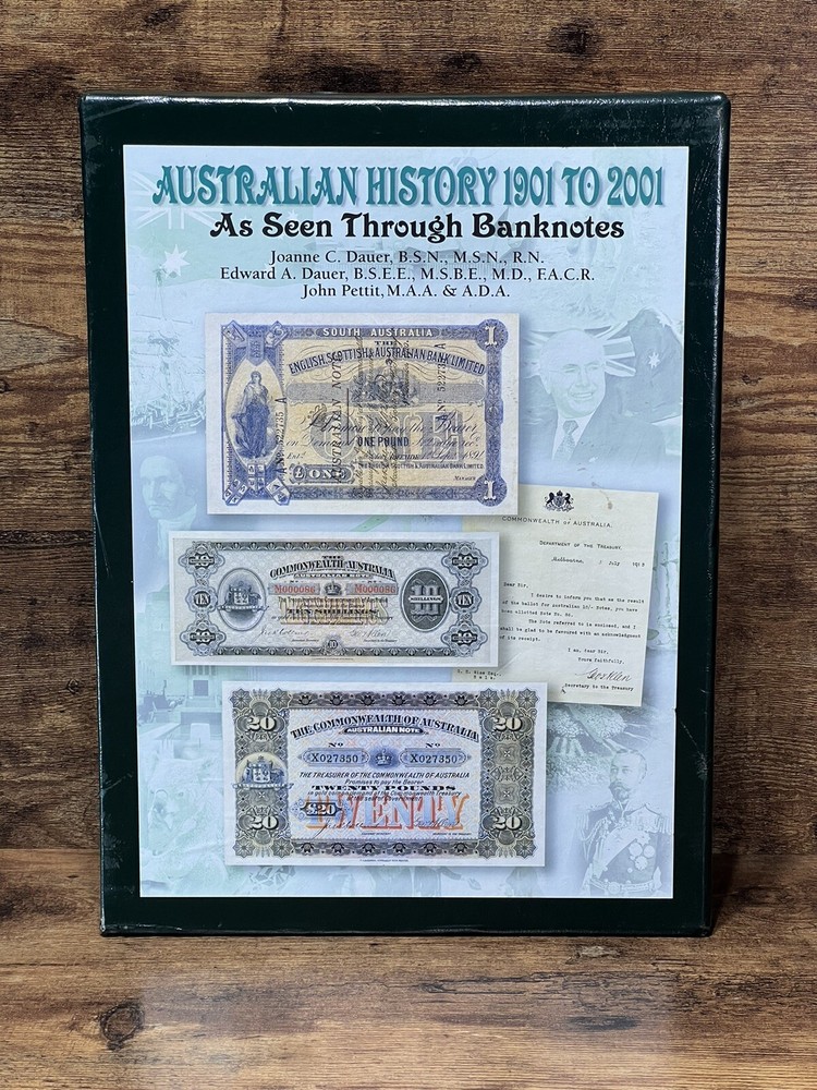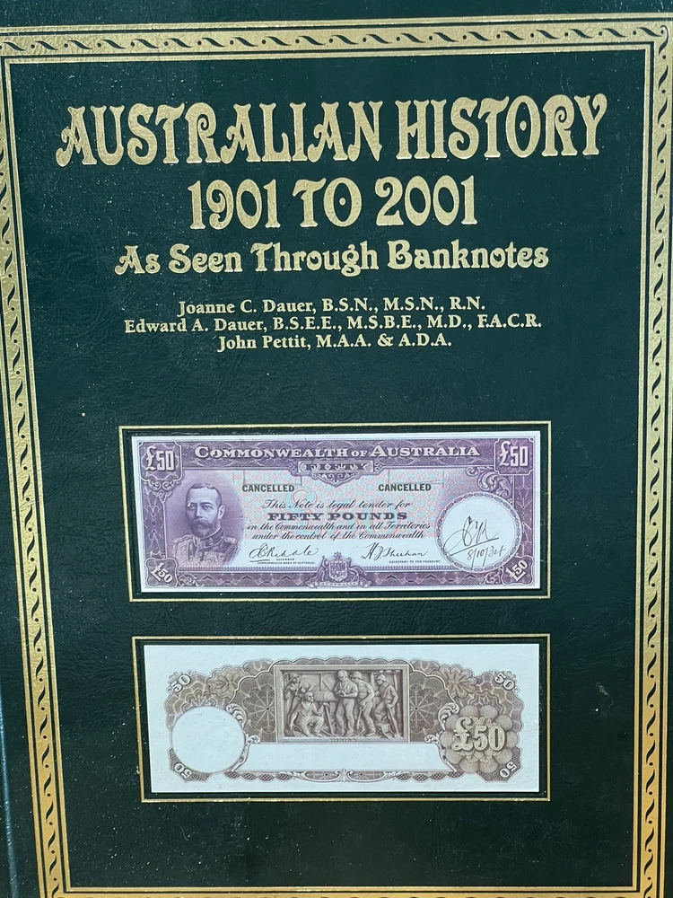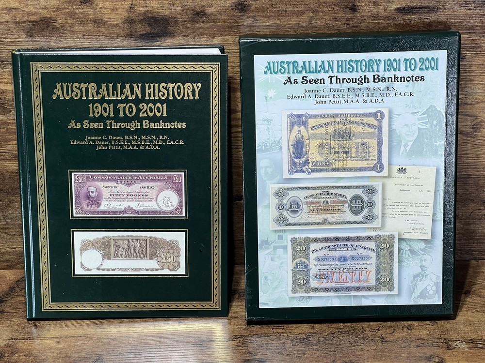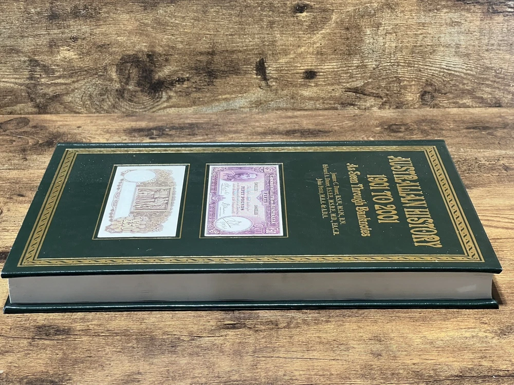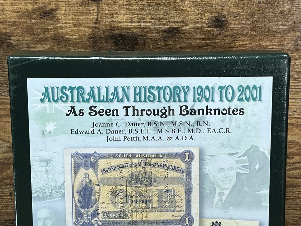 This book is a must-have for anyone interested in Australian history. It explores the subject of Australian currency and banknotes, from the early 1900s to the modern era. The book is written in English and has 178 pages, measuring 9 inches in length, 12 inches in height, and 1 1/2 inch in width. The book is a trade paperback and comes in a faux leather bound slipcase. It features illustrations by Fred Wolfe and was published in 2007 by Dauer, M.D. and Edward A. The intended audience is adults, and the book is a non-fiction narrative type. This book is a great addition to any collection, especially for those interested in cultural heritage, Australia and New Zealand, coins, currency, and medals.