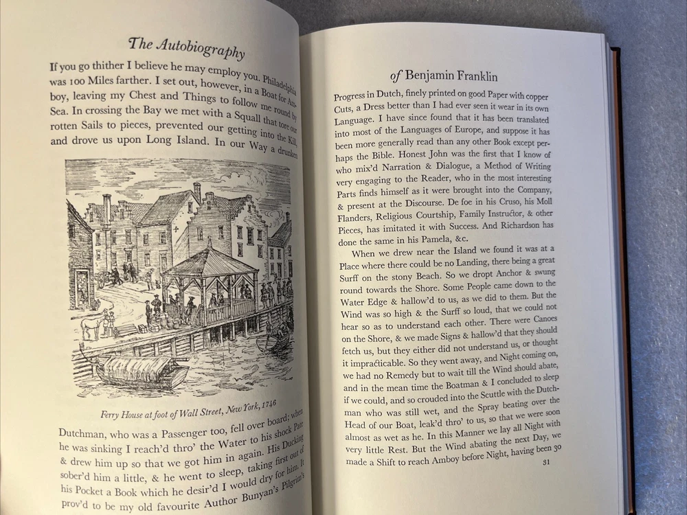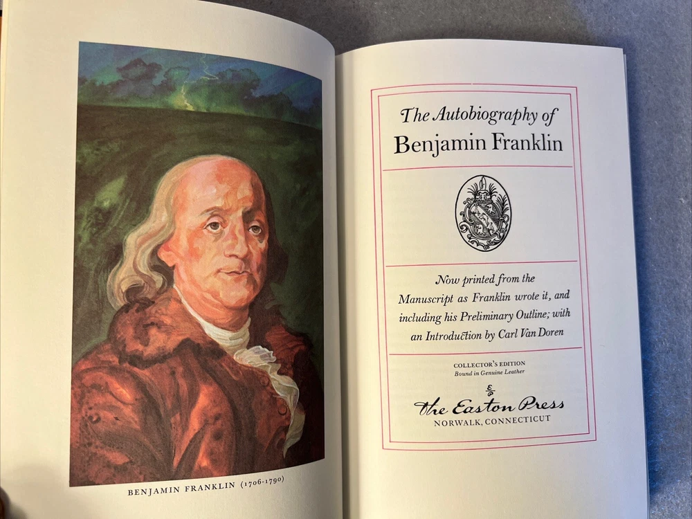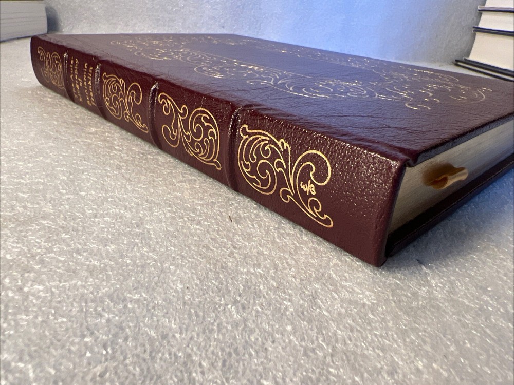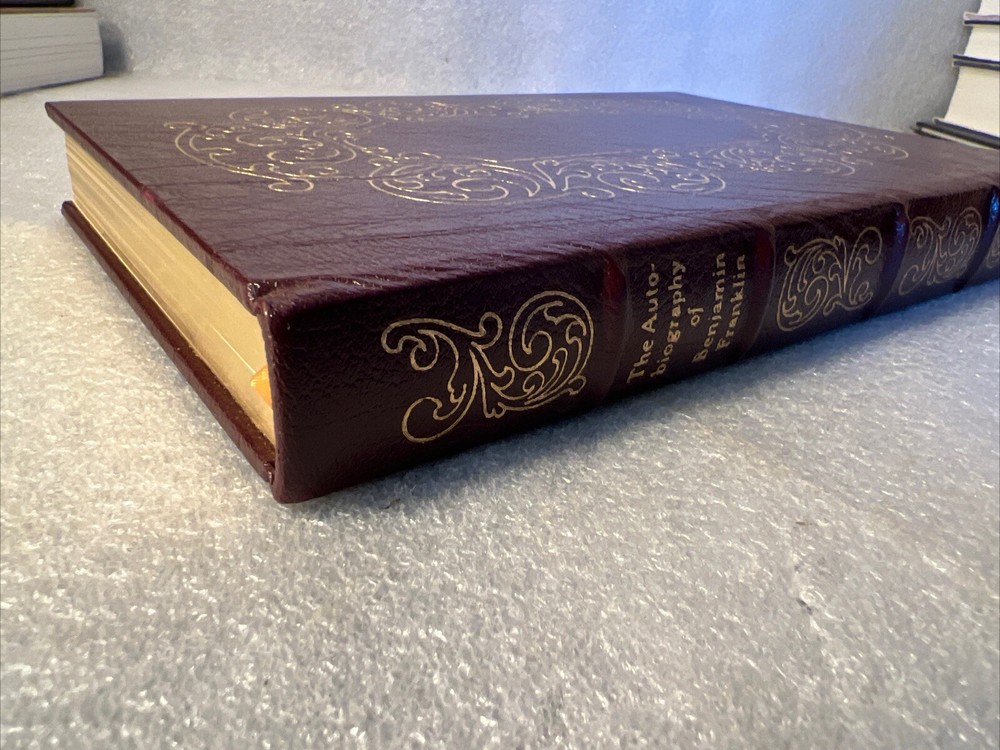 Like new condition. This rare and highly sought-after book is a must-have for any collector or enthusiast of historical literature. The Autobiography of Benjamin Franklin, published by Easton Press in 1976, is a collector's edition bound in leather with gilt pages. The book features the complete life story of one of America's most influential figures, written in English by the man himself. The binding of the book is made of high-quality leather, and the pages are adorned with intricate gold detailing. This edition is a true gem for any book collector, and it is sure to be a prized possession for years to come. Get your hands on this remarkable piece of history today!
