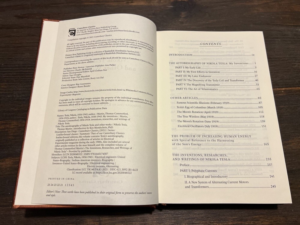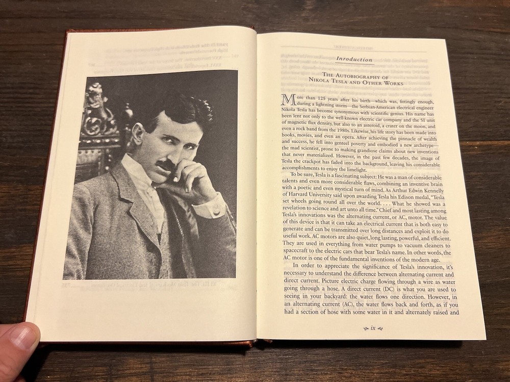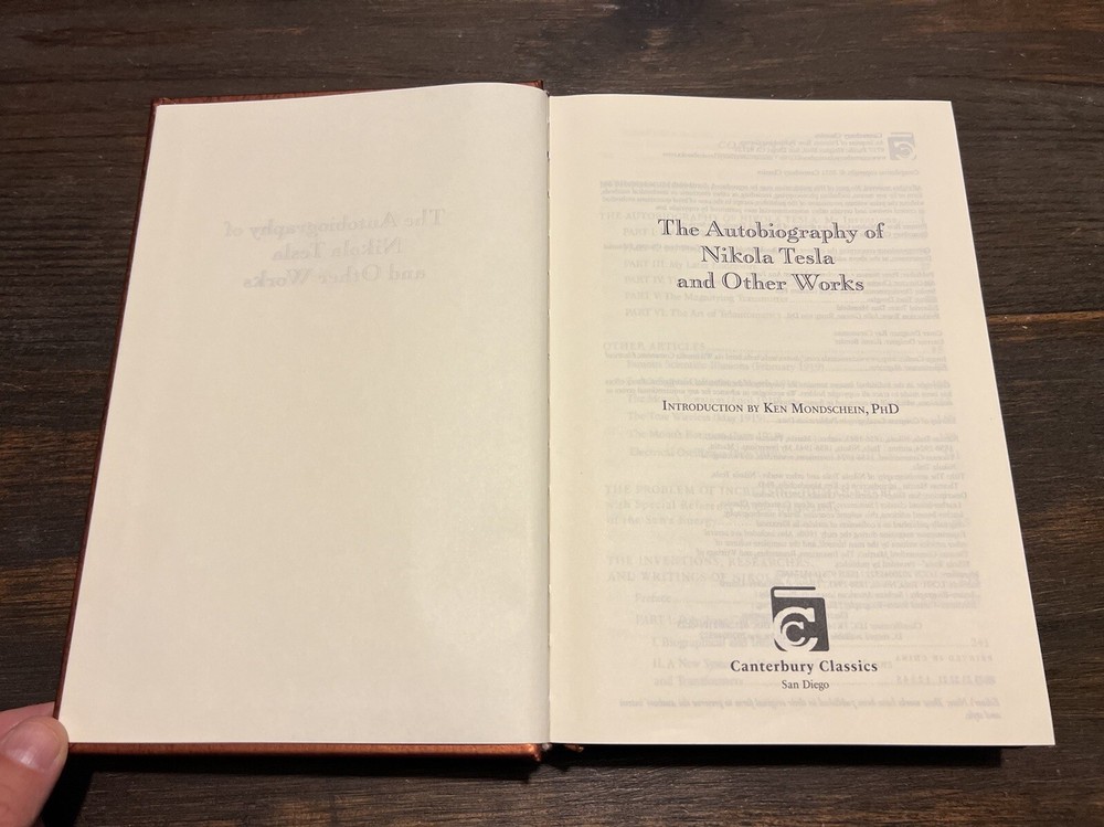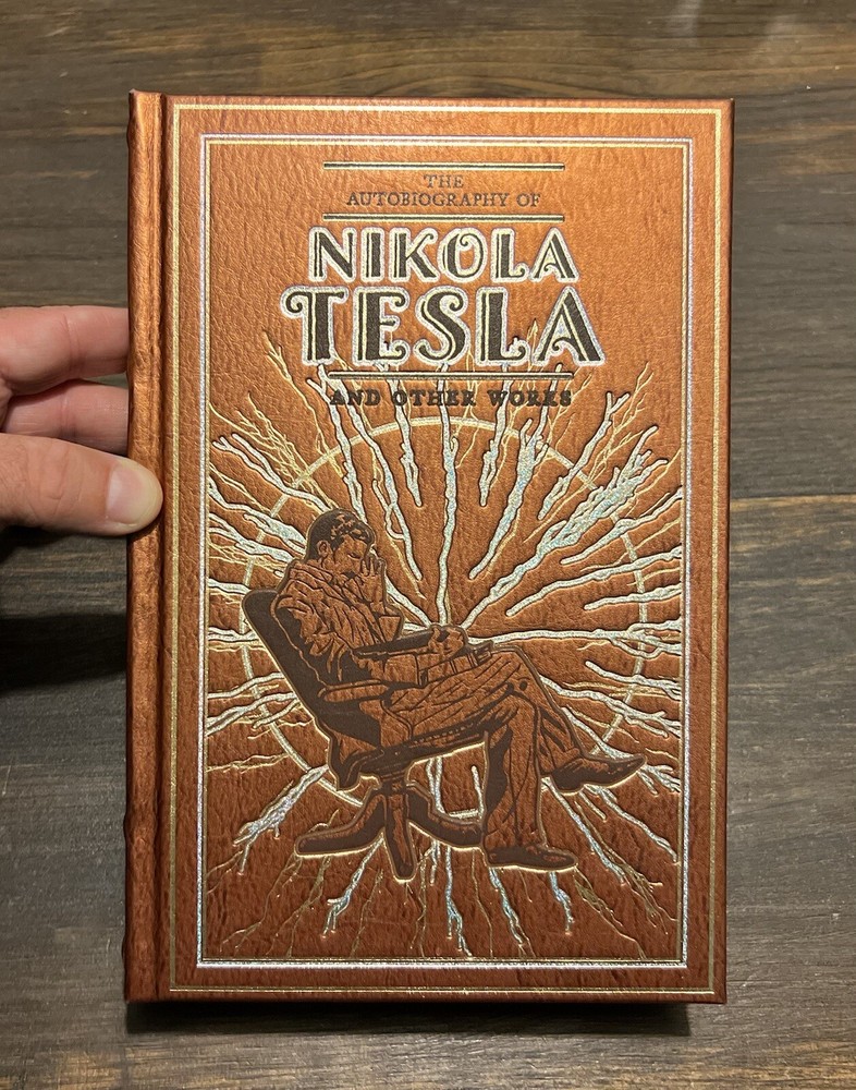 This is a rare and exclusive edition of the autobiography of one of the greatest inventors of all time, Nikola Tesla. This leather-bound book is a collector's item that includes not only the autobiography but also other works of Tesla. The pages are illustrated and the book is bound with a ribbon that adds to its luxury. The publication was done by Canterbury Classics in 2014 in San Diego. The book is in English and is a limited edition. The topic is the biography and autobiography of Tesla. If you are a fan of Tesla or interested in learning about one of the greatest minds in history, this book is a must-have.