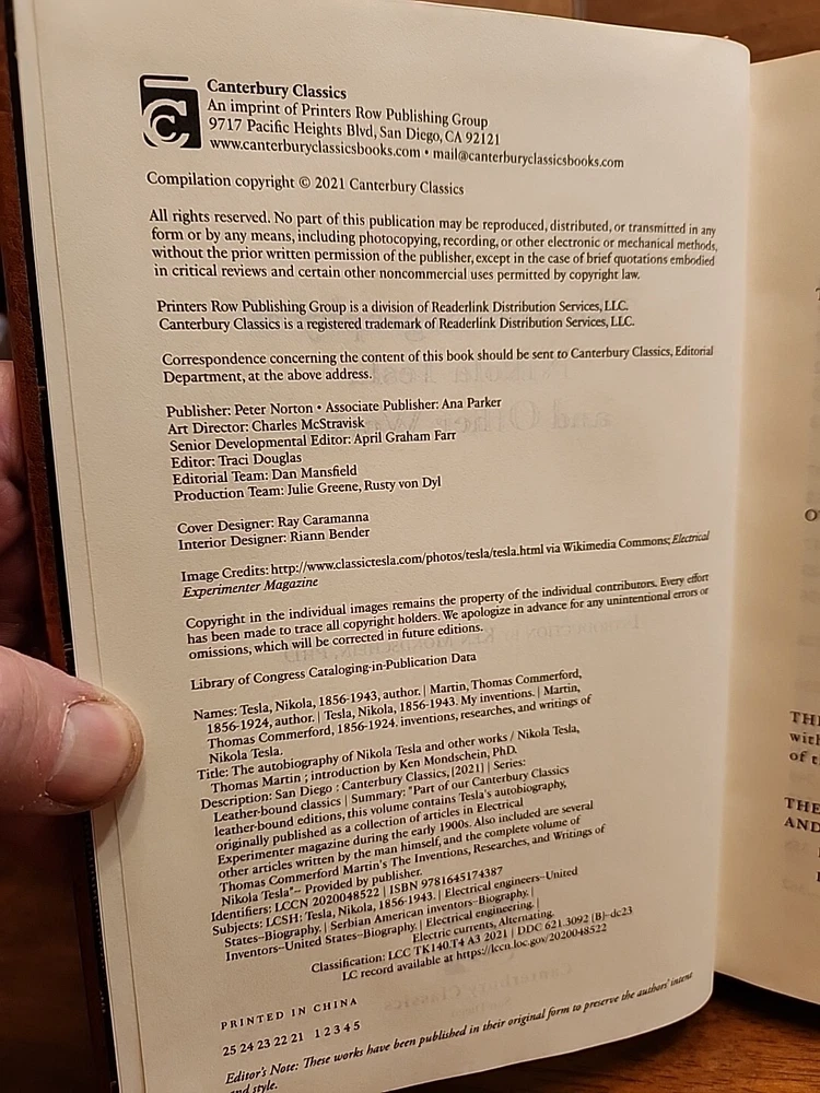 The "Autobiography of Nikola Tesla and Other Works" is a luxury edition collector's item, bound in leather with a ribbon bookmark. Published in 2014, this limited edition book features illustrations and offers insights into the life and work of Nikola Tesla, a pioneering inventor and engineer. The book is written in English and provides a comprehensive look into the biography and autobiography of Tesla, making it a valuable addition to any collector's library.