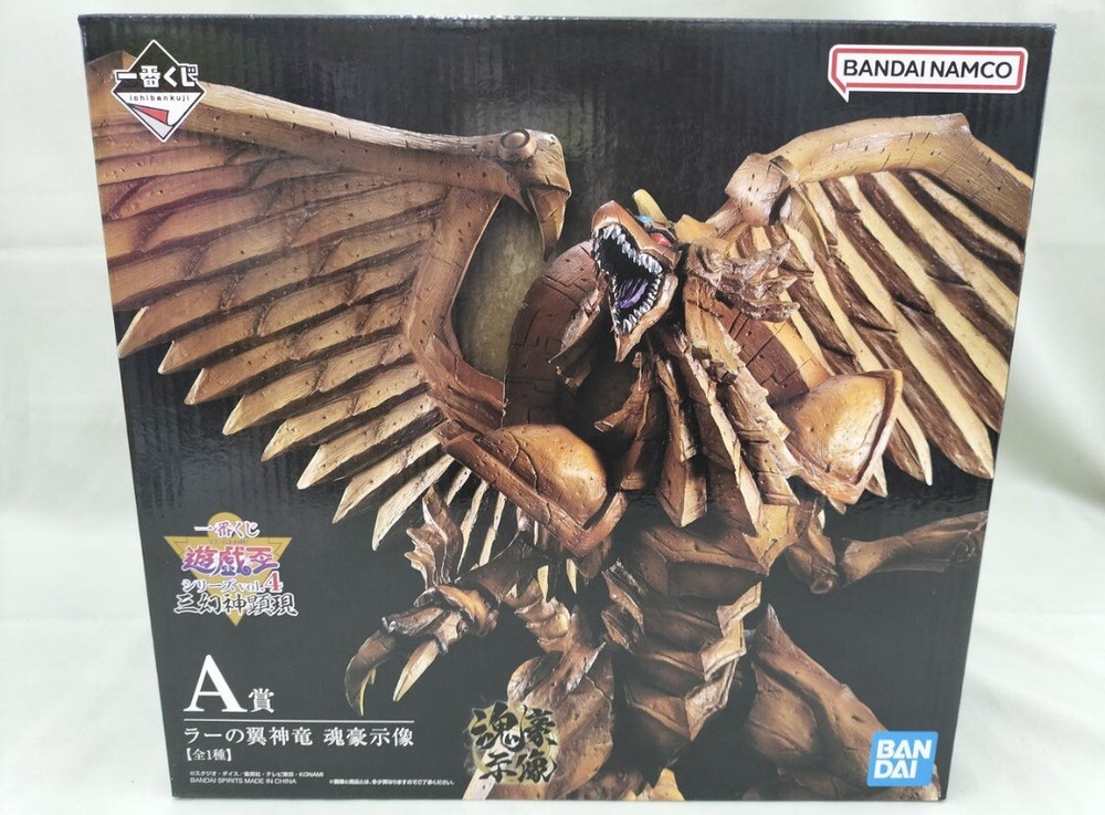 BANDAI Yu-Gi-Oh! Ichiban Kuji A Prize Winged Dragon Ra's Spirit Statue Unopened Condition: Used, unopened. Damage to the outer box. Dirt on the tape that secures the outer box. ◇Payment usually ship within 4〜6business days of receiving cleared payment. ◇Shipping We ship using FedEx, DHL and Japan Post. ◇Return Policy All buyers have the right to return the item if not satisfied. Returns are available within 60 days of the receiving date. We will cover the round shipping fees on defective products but will not cover return shipping fees on buyer's simple change or wrongfully purchased orders. ◇Import duties, taxes, and charges are not included in the item price or shipping cost. These charges are the buyer's responsibility. Please check with your country's customs office to determine what these additional costs will be prior to bidding or buying. Thank you for your understanding. ◇Customer Service We will do the best to solve the problem that may occur. Please Feel free to contact us at any time :) ◇Feedback Policy Please send us a message if you have a problem on items before opening a case or leaving feedback we will do our best to resolve the problem.