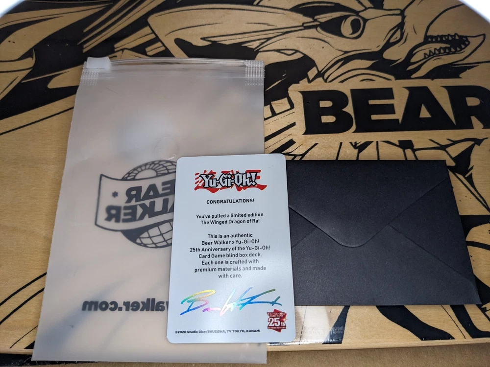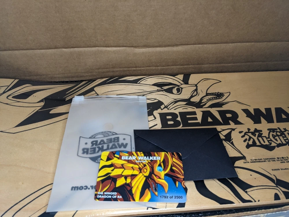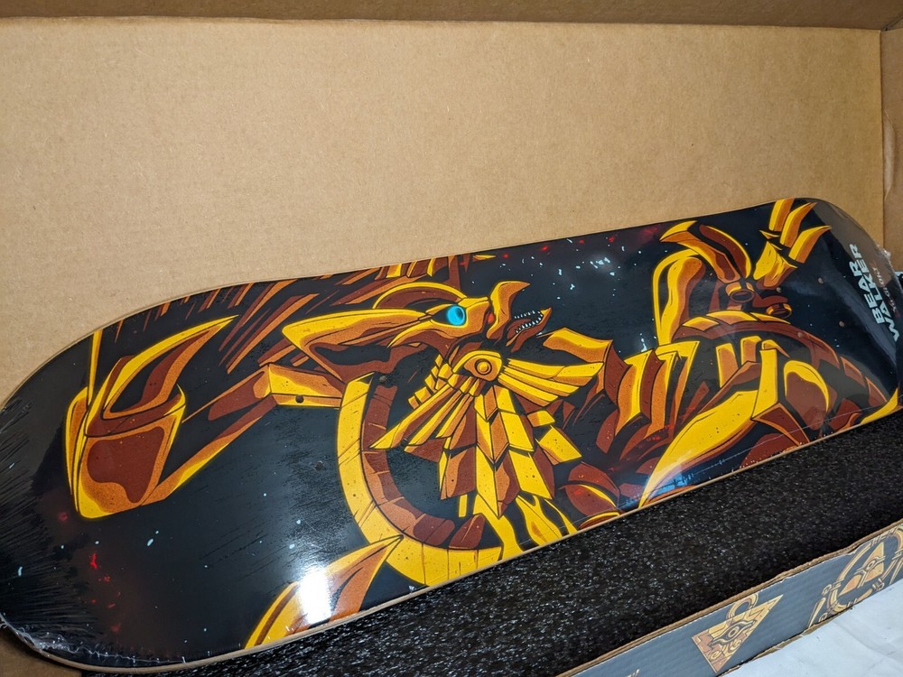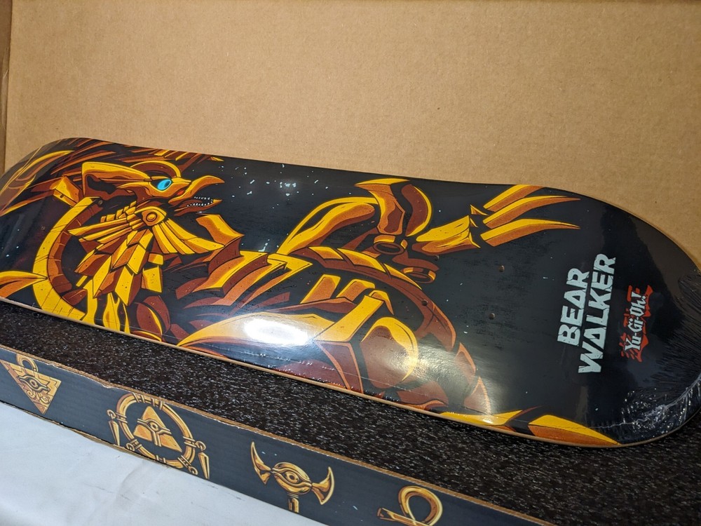 Item for sale: One Bearwalker Winged Dragon of Ra Skateboard Deck (Sealed inside the Plastic). 2500 Printed, this is #1792/2500 Paper Box was carefully opened and is included with the Deck. Shipping is flat rate because I ship with USPS Priority to ensure delivery and with Insurance. The product is a limited edition Bear Walker X Yu-Gi-Oh The Winged Dragon Of Ra God Deck (#1792) skateboard deck featuring artwork related to the Yu-Gi-Oh theme. Designed by artist Bear Walker, this skateboard deck is a unique and artful piece that would appeal to fans of both skateboarding and the Yu-Gi-Oh franchise.