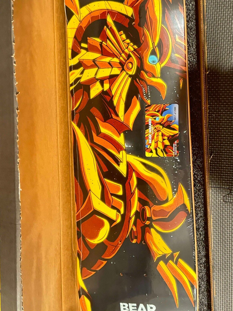 This Bear Walker skateboard deck features the iconic Winged dragon of RA and is a must-have for any Yugioh fan. With a limited edition run of only 2500 decks, this skateboard is a rare find and perfect for collectors or avid skateboarders. The deck is made of high-quality materials and is designed to last, ensuring that you can enjoy it for years to come. The deck is categorized under Decks, Skateboard Parts, Skateboarding & Longboarding, Outdoor Sports, and Sporting Goods, making it a versatile addition to your collection. Whether you're using it to skate around town or displaying it as a collector's item, this Bear Walker skateboard deck is sure to impress.