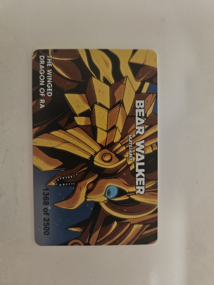 The Bear Walker x Yu-Gi-Oh! The Winged Dragon of Ra Skateboard Deck #0944 / 2500 is a limited edition skateboard deck featuring a design inspired by the iconic Yu-Gi-Oh! card, The Winged Dragon of Ra. Produced by Bear Walker, a renowned brand in the skateboarding industry, this deck combines quality craftsmanship with a unique and eye-catching design that is sure to stand out in any skateboarding enthusiast's collection. With only 2500 decks in existence, this limited edition piece is a must-have for fans of both skateboarding and Yu-Gi-Oh!