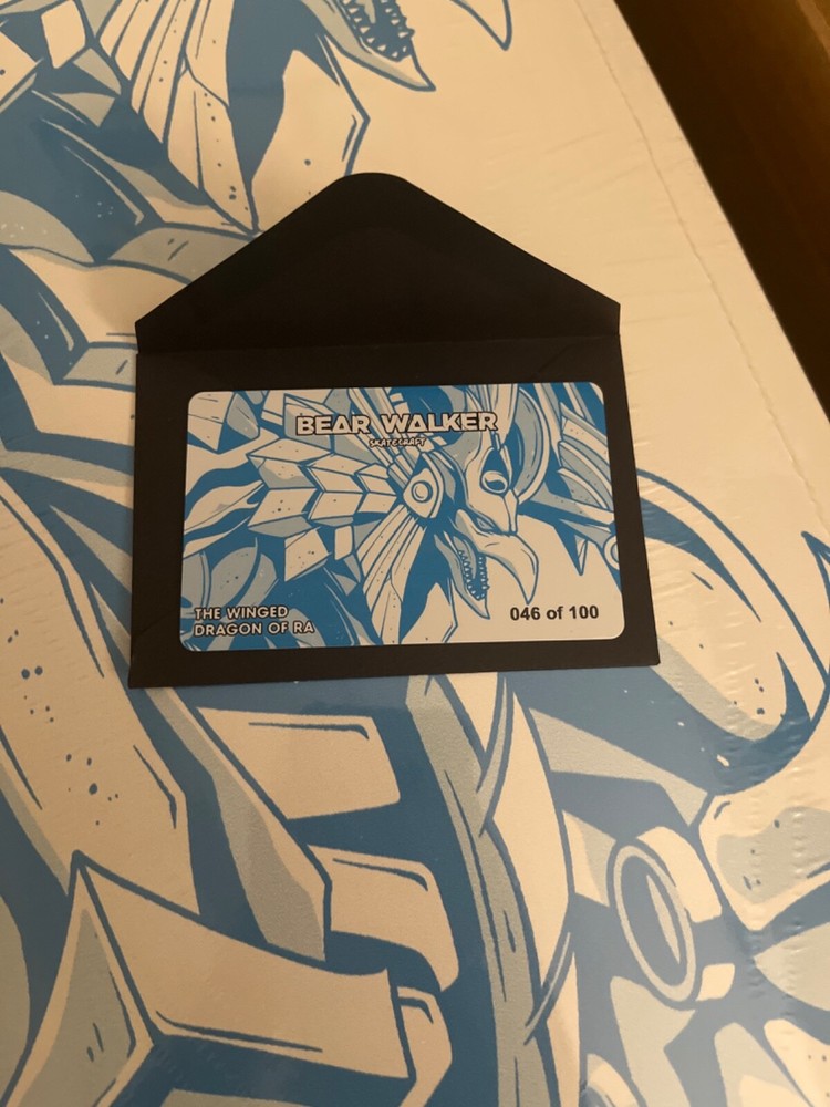 Limited edition Bear Walker x Yugioh 25th anniversary Secret Rare Winged Dragon of Ra skateboard deck #046/100...