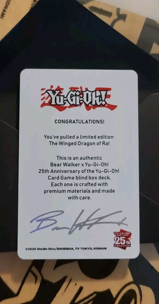 Bear Walker x Yu-Gi-Oh Blind Box Skateboard Deck THE WINGED DRAGON OF RA The deck is brand new and sealed in original plastic! The Official Bear Walker x Yu-Gi-Oh! 25th Anniversary of the Card Game Blind Box Deck Each deck comes with a numbered Certificate of Authenticity card. #0501 out of 2500 ( I have #0505 of 2500 RA deck available. As well as several of the Slifer the Sky Dragon decks. Feel free to check out my other listings) This exclusive Bear Walker x Yu-Gi-Oh! skate deck is handcrafted in North America and utilizes artwork in collaboration with Bear Walker Industries and Konami. Artists: Rupert Gruber & Bear Walker 8.25"x32" 7-ply hard maple Double kick concave Ships FAST and SAFELY