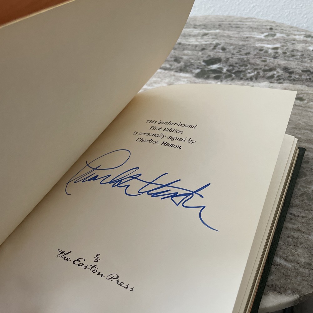 Beijing Diary - Charlton Heston - Easton Press - Signed First Edition 1990. This is a rare and valuable collectible book for biography and autobiography lovers. The book is bound in leather and has illustrations to enhance the reading experience. It is a first edition signed by the author himself, making it a unique piece to add to any collection. The book was published in Connecticut, United States, in 1990 and is written in English. It provides an insight into the author's experience in Asia and is a must-have for anyone interested in the topic.