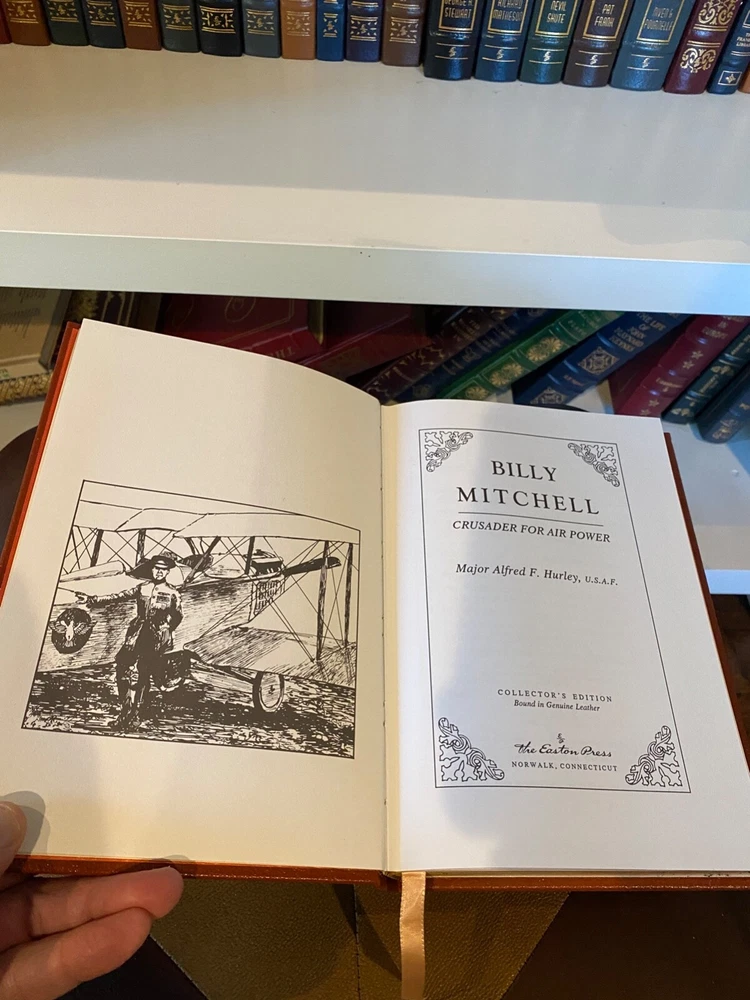 Billy Mitchell Crusader for Air Power A. Hurley Easton Press Collectors Edition 1992 Bound in genuine leather "This is the best book―the most scholarly, the most judicial, the best written―about the intelligent, attractive, undiplomatic, quixotic Billy Mitchell, the legendary founder of today's United States Air Force." ―Robert H. Ferrell, author of Harry S. Truman: A Life Revered by many Americans as a martyr for his cause, Brigadier General William "Billy" Mitchell has been one of the least understood figures of modern military history. His position as the dominant figure in American aviation from 1919 until his court-martial in 1925 has made him the frequent subject of biography, film, and television, but usually these portrayals have overemphasized the sensational elements of his story. For Mitchell, sensationalism was only a means of drawing attention to his farsighted ideas on aviation. In Billy Mitchell, he emerges as a man with a mission and a true pioneer of modern aviation, a man whose ideas about leadership in aerial operations inspire and instruct today's airmen and women. Anyone interested in aviation will delight in this compelling biography.