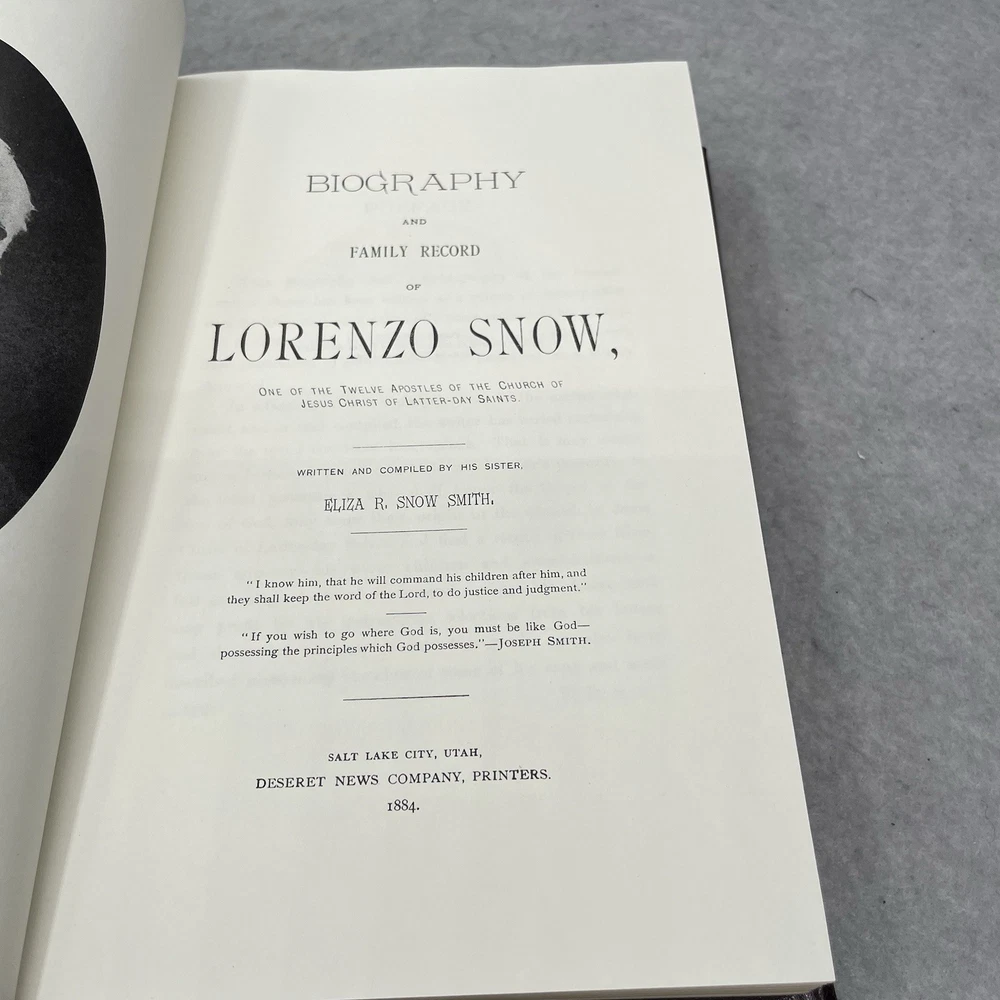 The "Biography and Family Record of Lorenzo Snow" is a special edition leather-bound book published by The Church of Jesus Christ of Latter-Day Saints in 1999. This nonfiction biography, written by Eliza R. Snow, provides insight into the life of early Mormon Church leader Lorenzo Snow. The book is intended for young adults and adults interested in religion and beliefs, with additional features such as gold gilt page edges, a satin ribbon marker, and a Christmas card from the First Presidency. This LDS gift edition is a valuable addition to any collection, making it a perfect gift for those interested in the history of the Mormon Church.