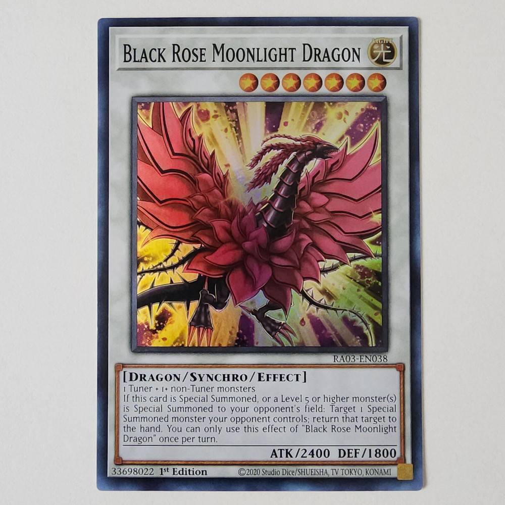 Black Rose Moonlight Dragon - RA03-EN038 - NM - Super Rare - 1st ed - Yugioh Quarter Century Bonanza Don't forget to click on the store icon for more great deals on singles, playsets, and sealed products.
