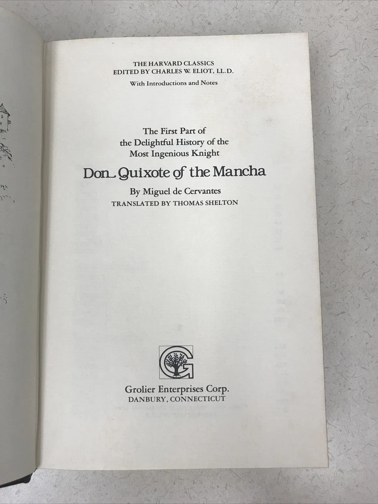 The Harvard Classics 1980 Collectors Edition Cervantes Don Quixote Of Mancha. Good Condition See photos Sturdy spine, clean pages. Signs of age and wear on spine (see pics.) Personalized embossing on first page (see pic.)