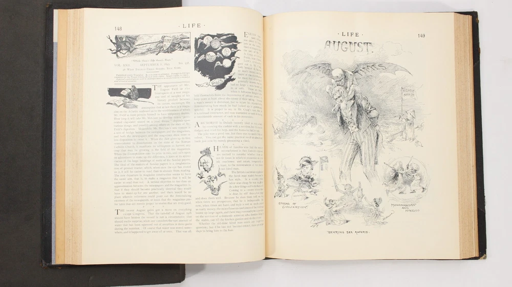 Bound Magazine: Life: July to Dec. 1893 Description 1893, Life Office, Ex-Library, Three-quarter bound leather, Volume 22: July to December, Unpaginated, Illustrated, Text in English. Title page has library name hole-punched into it, Various page edges chipped, Some pages have crease marks, Christmas issue is included in text. Offered by the Antiquarian, Rare, and Collectible department of Better World Books. Your purchase benefits global literacy programs. 100% satisfaction guaranteed. Payment Payment is accepted via PayPal, Google Pay, and Credit Card ( Mastercard, Visa, Discover, and American Express ). Payment is expected to be completed within four (4) business day (Mon-Fri). Items not paid for within four (4) business days will result in order cancellation and product being relisted at original listing price. Shipping Domestic Shipping: Standard Shipping has a 1-2 business day handling time. Once orders are shipped they will arrive in 2-8 business days with tracking included. International Shipping: International Shipping has a 1-2 business day handling time. Once orders are shipped they will arrive in 10-21 business days. Terms of Sale We offer a 100% satisfaction guarantee on all products. Should you be unhappy with your order, or would like to arrange a return, please contact us within 30 calendar days of receipt. About Us Better World Books is a for-profit, socially conscious business and a global online bookseller that collects and sells new and used books online, matching each purchase with a book donation. Each sale generates funds for literacy and education initiatives in the U.S., the UK, and around the world. Since its launch in 2003, Better World Books has raised $32 million for libraries and literacy, donated over 29 million books, reused or recycled more than 373 million books, and sold over 100 million books. Contact Us Our team is always happy to help and is available Monday through Friday (7:00 AM - 2:30 PM ET). Send us a message through eBay should you have any questions about listings, orders, or offers.
