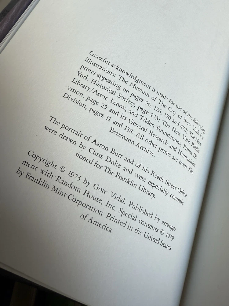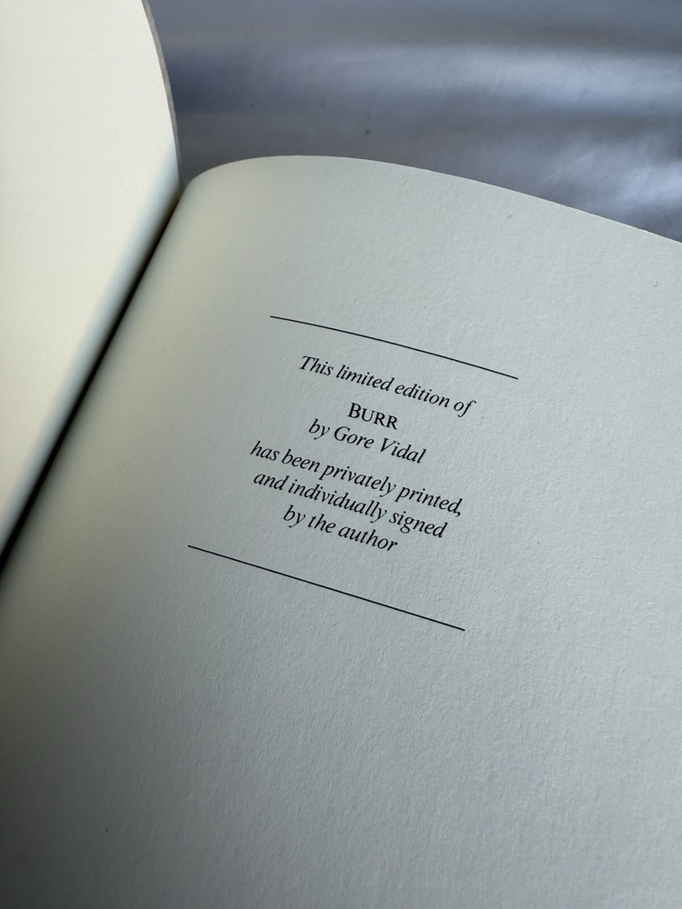 This leather-bound special edition of "Burr" by Gore Vidal is a must-have for any biographical history enthusiast. Published by Franklin Library in 1979, this limited edition book is signed and in mint condition. The author's captivating narrative and vivid portrayal of historical events make this book a page-turner that readers will not want to put down. With its beautiful leather binding and exceptional quality, this book is sure to impress any collector or lover of great literature.