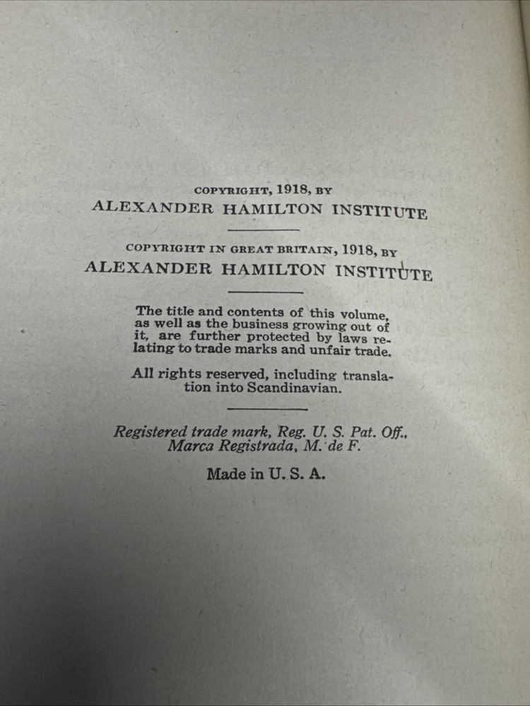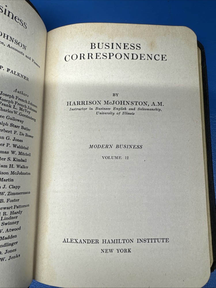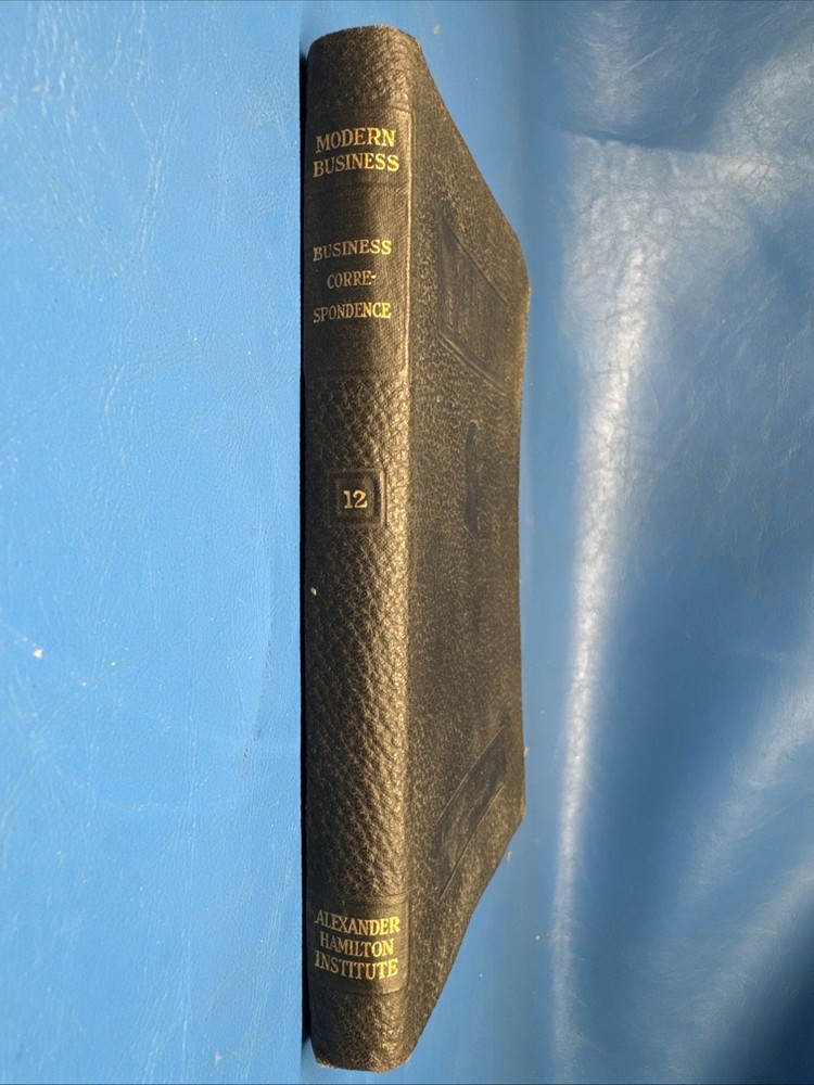 This is a leather-bound book titled "Business Correspondence Vol 12" written by Hugh E. Agnew and published by Alexander Hamilton Institute in 1918. The book is written in English and is signed by the author. It covers the topic of advertising and is categorized under Biography & Autobiography. The book was printed in the United States and is a valuable addition to any collection of antiquarian and collectible books. S262