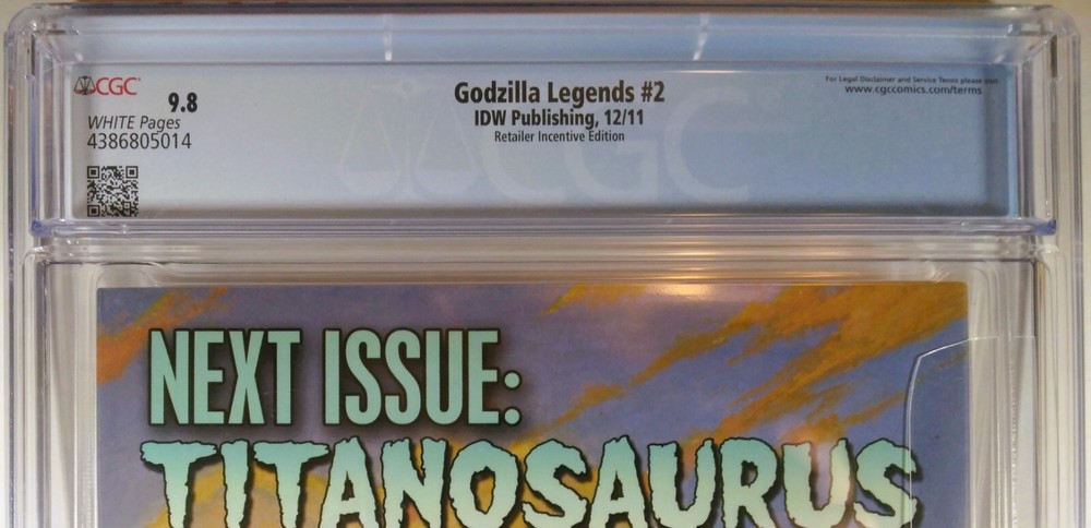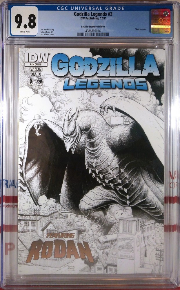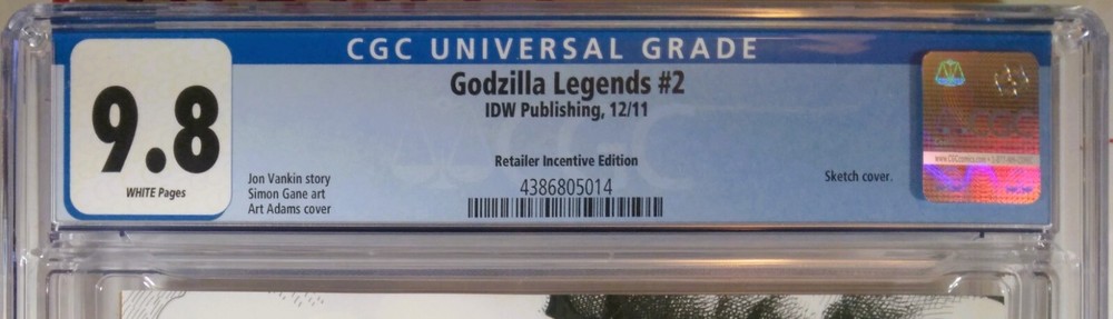 GODZILLA LEGENDS #2-RI CGC 9.8 NM/MT IDW PUBLISHING (2011) FIRST PRINT :: WHITE PAGES ARTHUR ADAMS 1:10 SKETCH VARIANT 🔎 LONE TOP CENSUS + LOW POPULATION ONLY 1 GRADED CGC 9.8 (THIS IS IT!!) ONLY 2 GRADED OVERALL (EXTREMELY SCARCE!!) NICE CASE. NO CRACKS. NO SCRATCHES. NO STORE STICKERS. CASE MAY HAVE MINOR/ INCIDENTAL IMPERFECTIONS. Please see photos * PLEASE NOTE THAT THERE MAY BE THE APPEARANCE OF "NEWTON RINGS" ON THIS SLAB (FAINT MULTI-COLORED RINGS THAT APPEAR UNDER DIRECT LIGHT - GOOGLE IMAGE SEARCH FOR A QUICK VISUAL REF) ** ACCORDING TO CGC THESE ARE COMMON AND MAY COME AND GO OVER TIME + VISUAL EFFECT ONLY THAT DOES NOT TOUCH THE COMIC, AND WILL NOT DEGRADE THE COMIC :) PACKAGED FOR SAFE DELIVERY + 100% FULLY INSURED + TRACKED FOR DELIVERY CONFIRMATION Questions? Please ask before making your purchase! TRADING COMICS ON EBAY SINCE 2002 BUY WITH CONFIDENCE Please allow up to 15 days for delivery within the Continental USA All items as described. All sales are considered final.