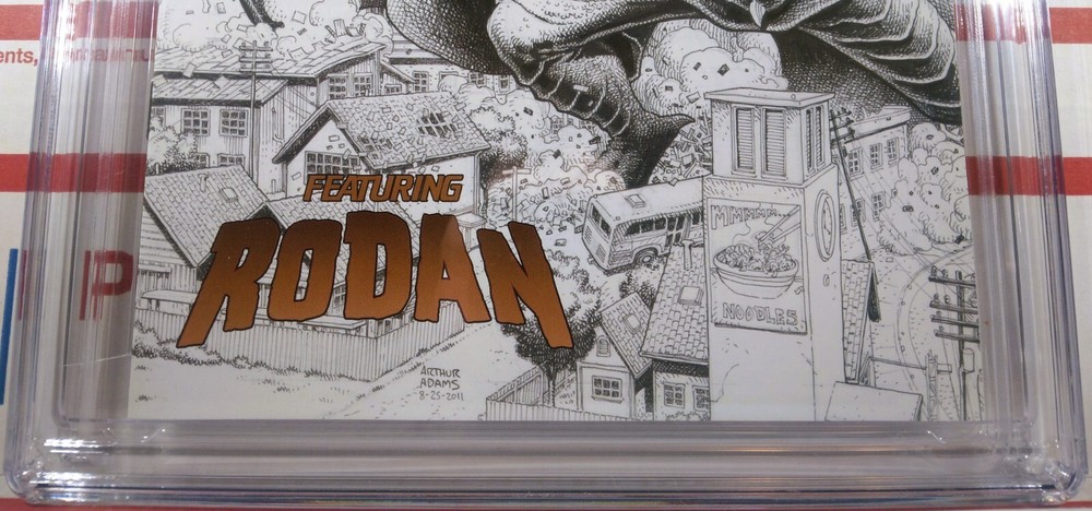 This is a must-have for Godzilla collectors! The CGC 9.8 grade confirms pristine condition, and the Arthur Adams 1:10 sketch variant makes it ultra-rare—only two exist at this grade. White pages, no flaws, just a stunning NM/MT slab with minor case imperfections expected. Rodan’s bold design pops, and the low census (just one other graded 9.8!) guarantees exclusivity. Even potential Newton rings won’t dull this beauty. A legit grail for serious fans!
