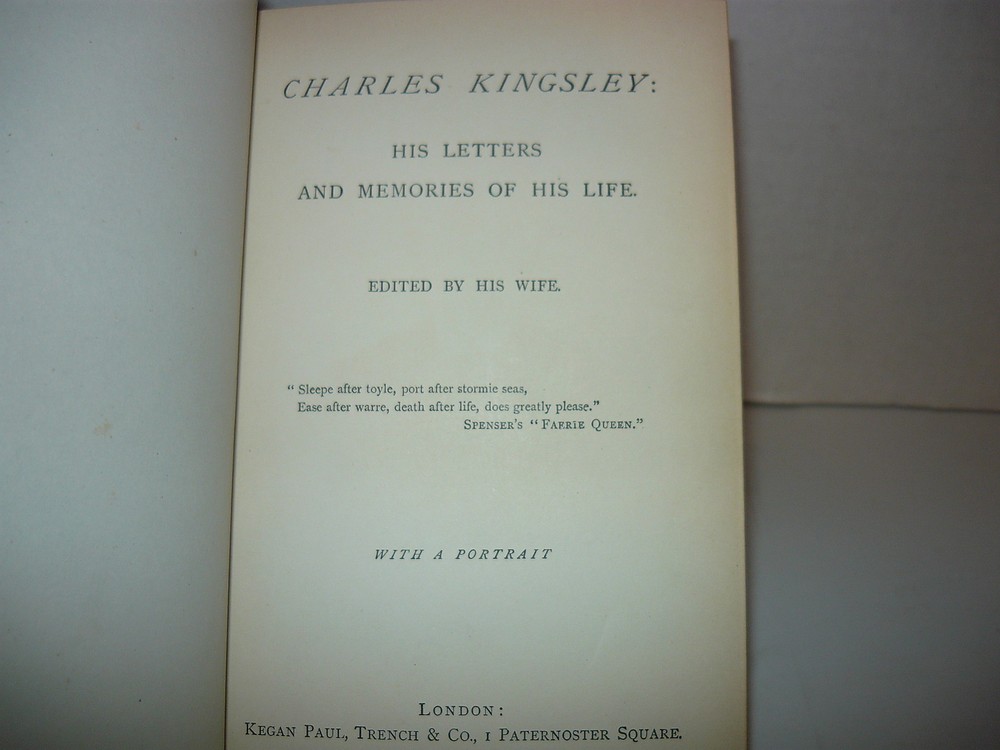 Charles Kingsley His Life & Letters Published by Kegan Paul , Trench & Co. 1884 London, Full Leather Binding, Marbled Page Edges, Marbled End Pages, 364 pg.Portrait Frontis. Very Good+ Condition. Ownership Info On End Page,Measures 5" by 8". Powered by eBay Turbo Lister The free listing tool. List your items fast and easy and manage your active items.