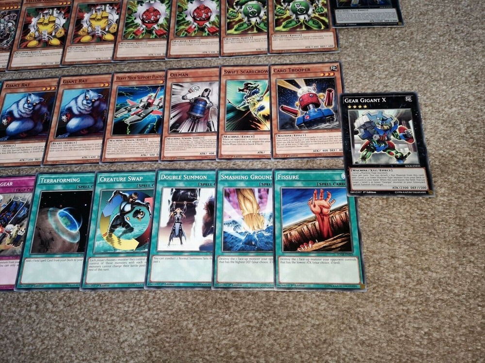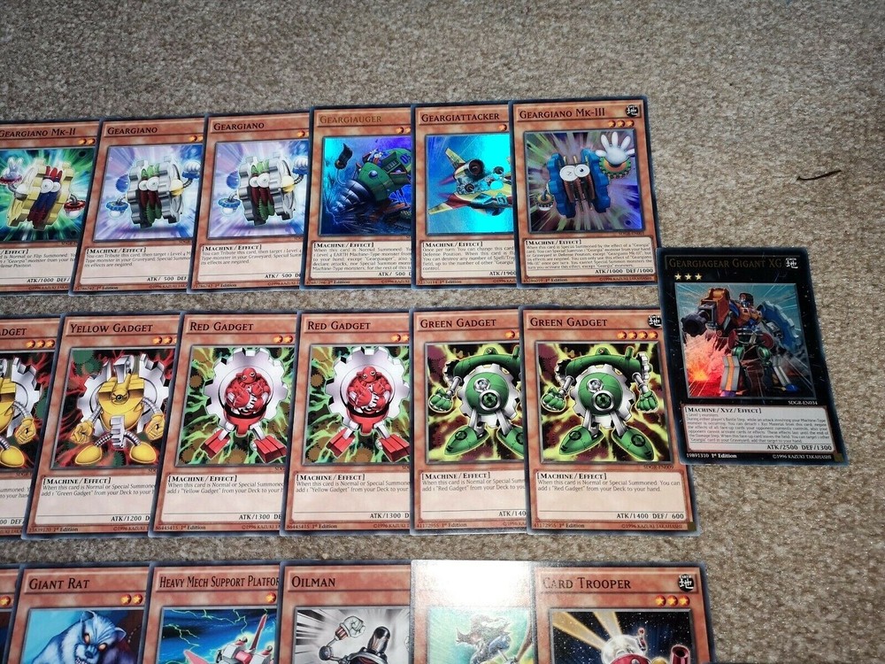 Home New Arrivals Feedback Contact COMPLETE 1st Edition 42 Card SDGR Deck: Gigant, Gear, Geargiauger etc. Item Description Good day Sir/Madam! The card(s) you are viewing now will be in Mint/Near Mint condition All cards are in mint/near mint condition with just Gigant XG having a little more wear :) All conditions stated in my listings are my opinion of the card, which may differ from somebody else. When I say 'Mint condition', I believe it is grade worthy, please message me first if that is what you are after and I will double check any card for you so nobody is disappointed :) Please have a look at my other swag! XD The first picture will be the 1st card (set of cards) you will receive!!! A ny extra pictures are to show you the other cards for sale (Picture order is consistent with the card(s) I will be posting to you). So if I have quantity of 3 for example, and 1 has sold, you will receive the card(s) in the 2nd photo(s) :) CHECK OUT MY GRADING SYSTEM BELOW ^_^ MINT - No damage......MINTY FRESH! (message me if it needs to be grade worthy) NEAR MINT - Close to Mint, only very slight wear or any very small imperfection(s) VERY GOOD - Visible wear on the card but no major wear GOOD - Obvious wear but nothing unplayable USED - Still playable but in pretty bad shape, bad condition Always message me if unsure of condition :P Please have a look at my other swag! :) Message me if i can help with anything at all! ***I WILL BUY YOUR YU-GI-OH CARDS !!!*** See Other Items Shipping Always very well packaged!! I always post the same day or next working day depending on how late in the day the order is placed :) Message me if you have any specific requirements for postage! I am not responsible for customs charges for oversees buyers Payment I accept all types of payments (Paypal, Credit/debit card, Apple/Samsung pay etc...) Returns I will accept any returns for items not as described :) I will also accept returns on items where you have simply changed your mind. However I would have to request that you pay any postage and fees :) Thanks for looking Thank You for your purchase Copyright All Rights Reserved - Template Created by ZTproject