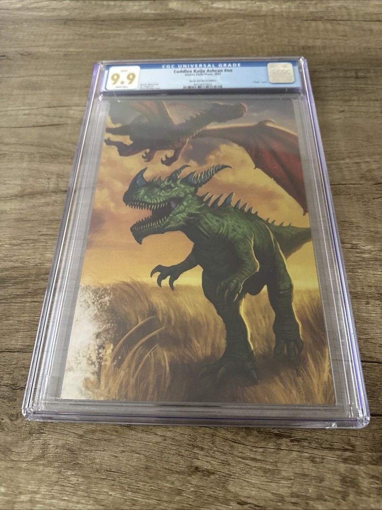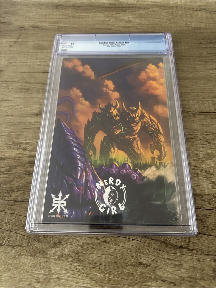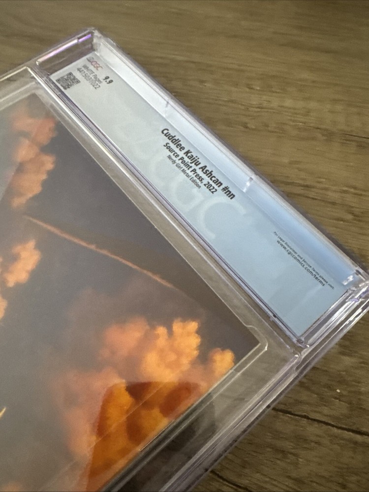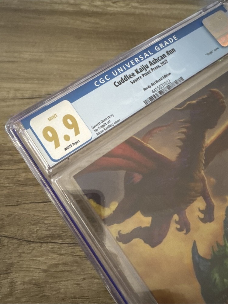 The product is a single issue comic book titled "Cuddlee Kaiju Ashcan #NN" with a cover featuring artwork by Aaron Bartling. It is part of the Cuddlee Kaiju Ashcan series by Garrett Gunn, published by Source Point in 2022. The comic is in English and is professionally graded by Certified Guaranty Company (CGC). The cover artist is Aaron Bartling.