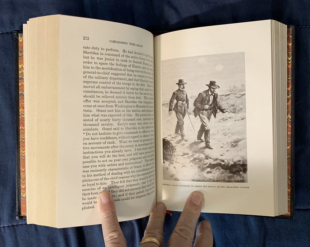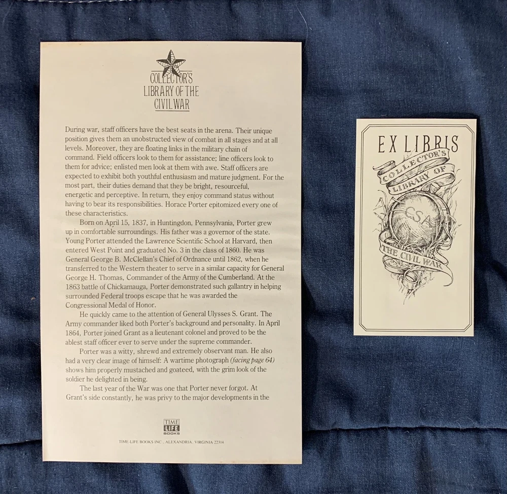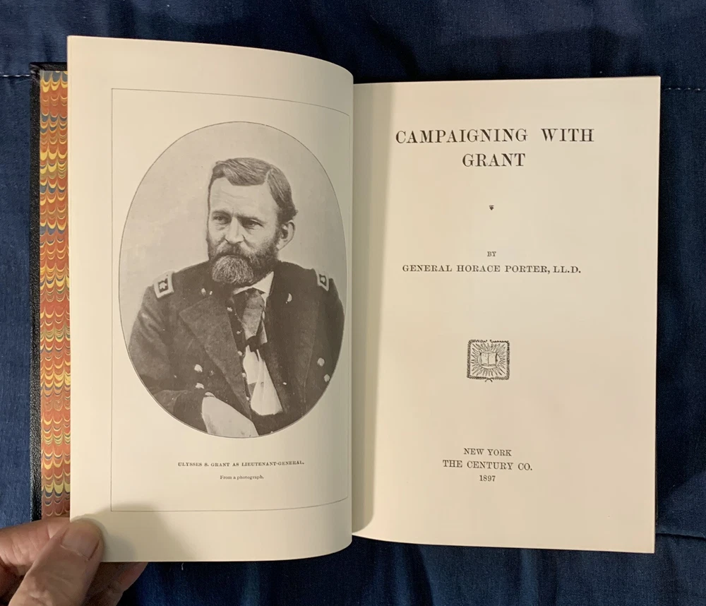 Campaigning with Grant by Horace Porter Collector's Library of Civil War 1981. Shipped with USPS Media Mail. Near fine condition hardcover (leather binding) book. Collector's Library of the Civil War Volume from Time Life Books. This is the 1981 Reprint of the 1897 Original. Leather Bound, Gold Gilt Page edges. Looks like a couple finger prints on the top page edge gilt (not visible in the photo). Comes with Information sheet and book plate.