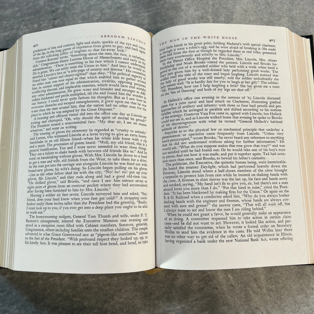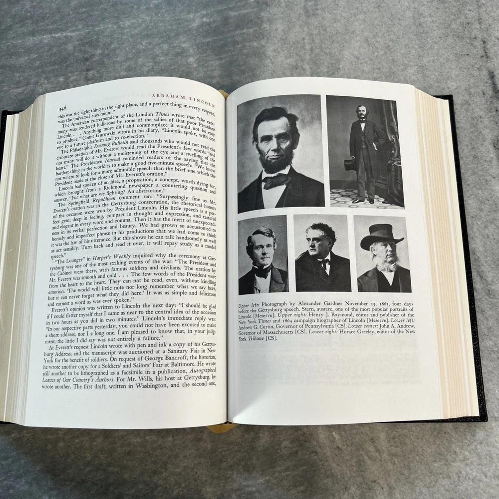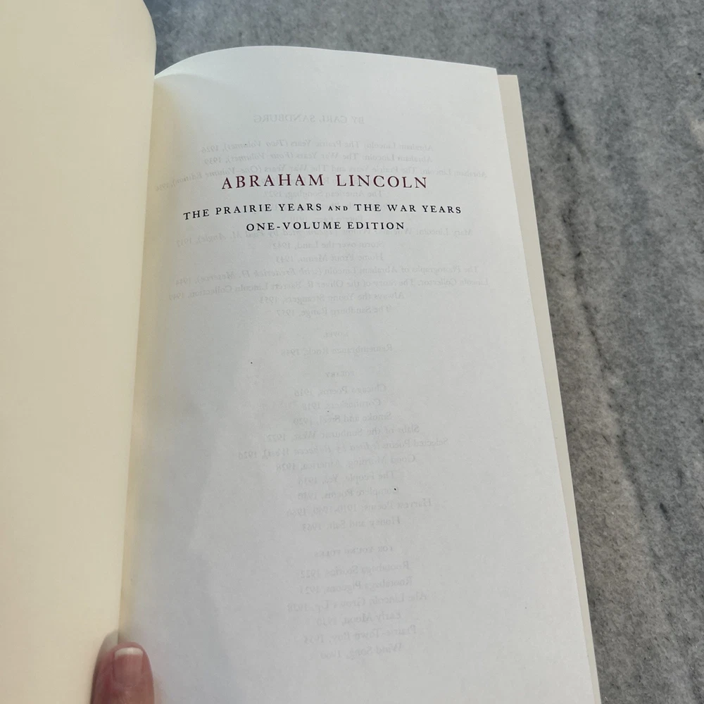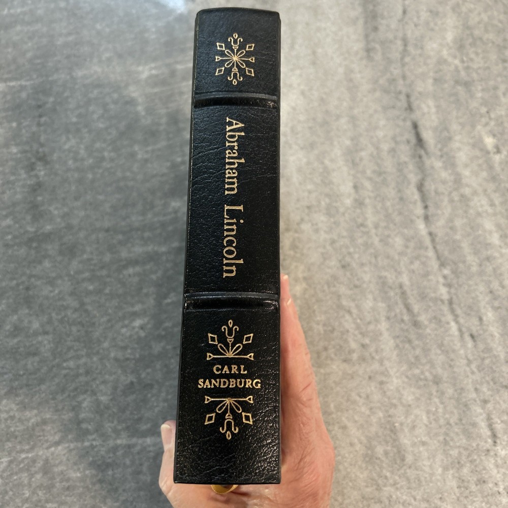 The product is a vintage hardcover book titled "ABRAHAM LINCOLN THE PRAIRIE YEARS & WAR YEARS" by Carl Sandburg, published by Easton Press in 1984. This one-volume biography of Abraham Lincoln is illustrated and features leather binding and gilding. With a total of 762 pages, this book delves into the historical and political aspects of Lincoln's life, making it a valuable addition to any book collection focusing on American history and biographies.