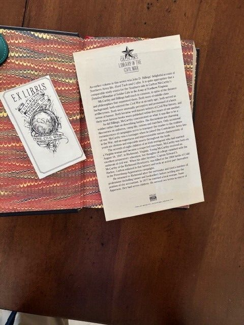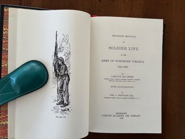 Carlton McCarthy. Detailed Minutiae of Soldier Life in the Army of Northern Virginia, 1861-1865. Alexandria, VA: Time-Life Books, 1982 (1882). Illustrated. A volume in the Collector's Library of the Civil War. Bound in full leather with a red silk bookmark. A.e.g. Leaflet and loose bookplate accompany the book. In fine, unread condition.