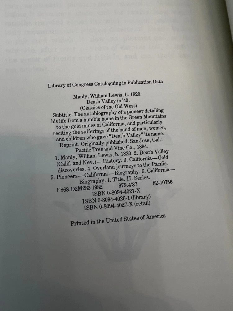 Classics of the Old West Death Valley in '49 Leather Bound Embossed Cover by William Lewis Manly in Excellent Condition Beautiful Collectible Book