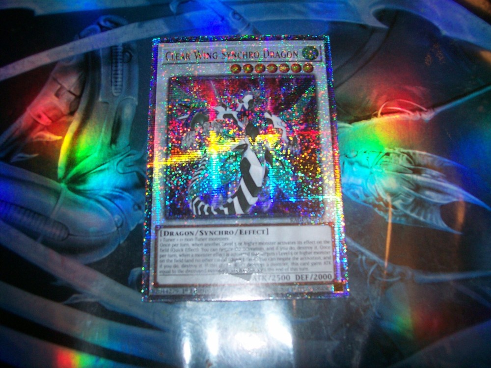 This card is absolutely stunning! The Quarter Century Secret Rare finish makes Clear Wing Synchro Dragon shine with incredible holographic detail. The colors pop, the edges are crisp, and the condition is flawless—perfect for collectors or competitive play. Pulling this from a pack felt amazing, and it looks even better in person. A must-have for any Yu-Gi-Oh! fan!