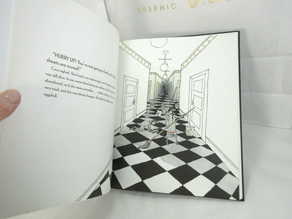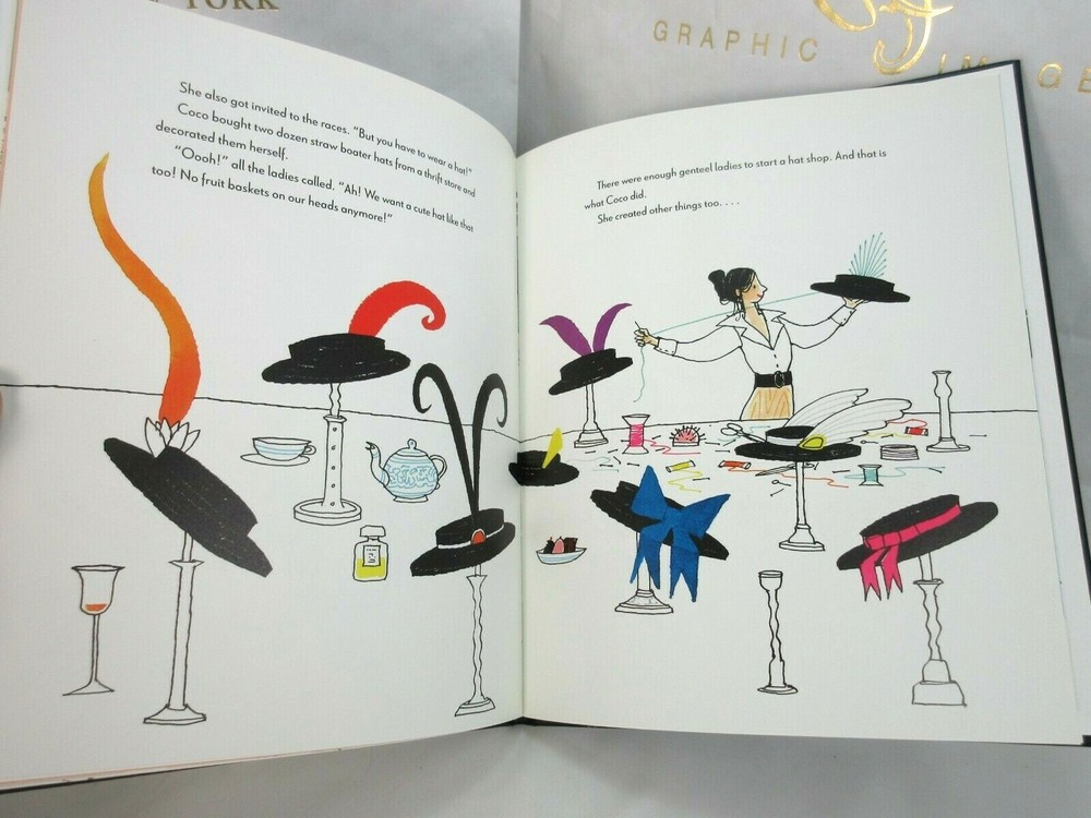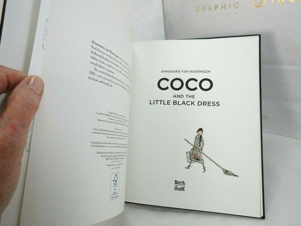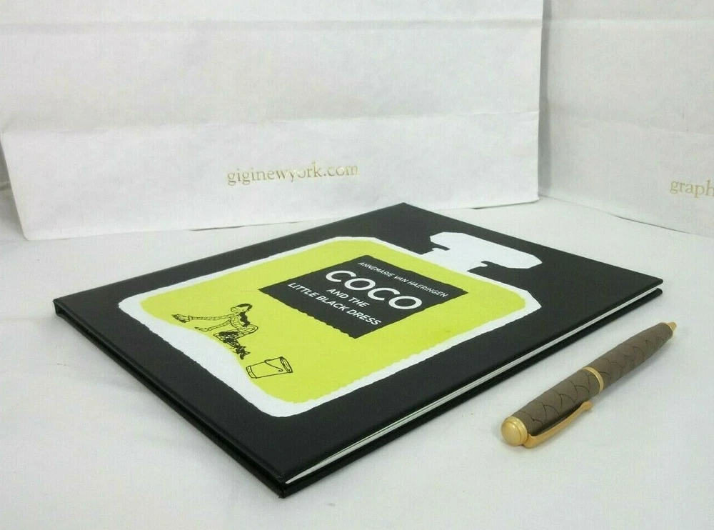 Coco and The Little Black Dress Bound by hand in bonded leather There is a small imperfection in the leather on the cover (see pic #2). Otherwise perfect. A beautifully illustrated picture book biography of Coco Chanel. Coco Chanel (1883-1971) was a famous French fashion designer. Born into a poor family, strictly brought up in the orphanage, influenced by the style of wealthy suitors , she remained faithful throughout her life to the simplicity. A luxurious simplicity , which has produced memorable style icons like the little black dress and perfume Chanel No. 5. 32 pages Size: 8.2" x 0.2" x 10" List price is $95 "Hurry up! You may only go to bed when all the sheets are ironed." Little Coco grew up in the orphanage and had to work hard for a living sewing and embroidering like an angel. Until her eighteenth birthday . Coco knew one thing for sure Coco. She would never, never be poor again.