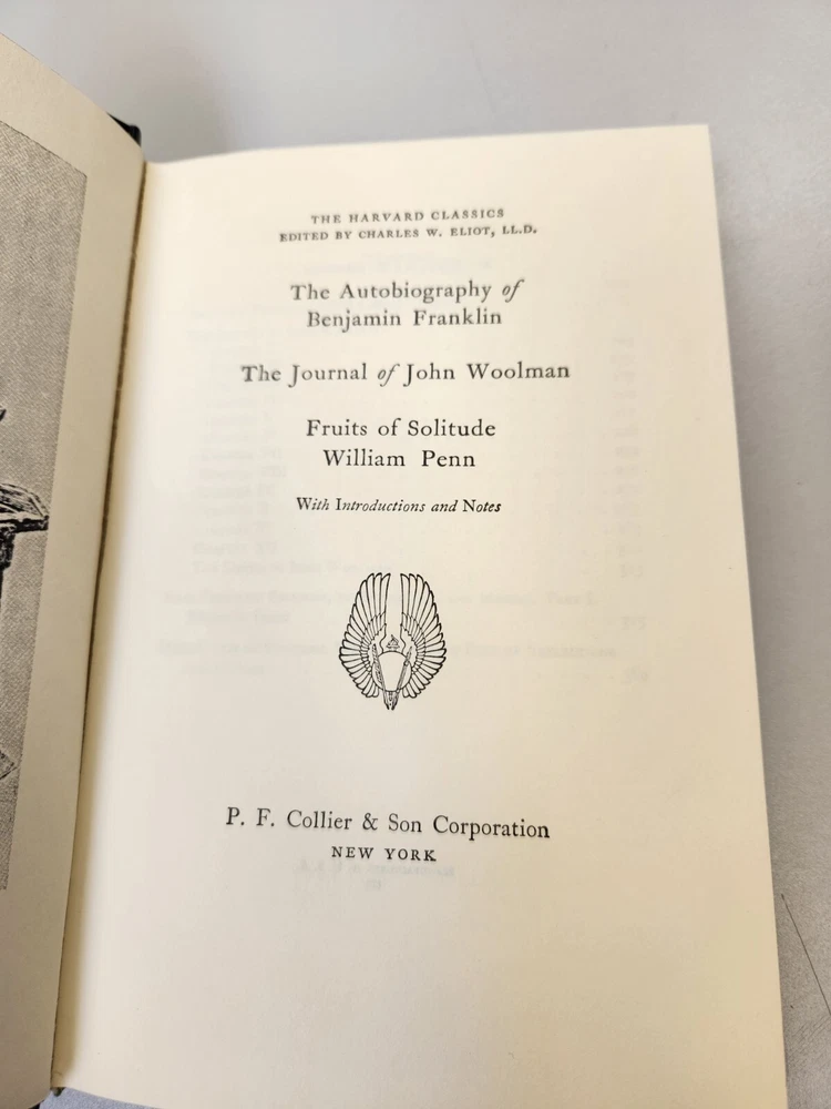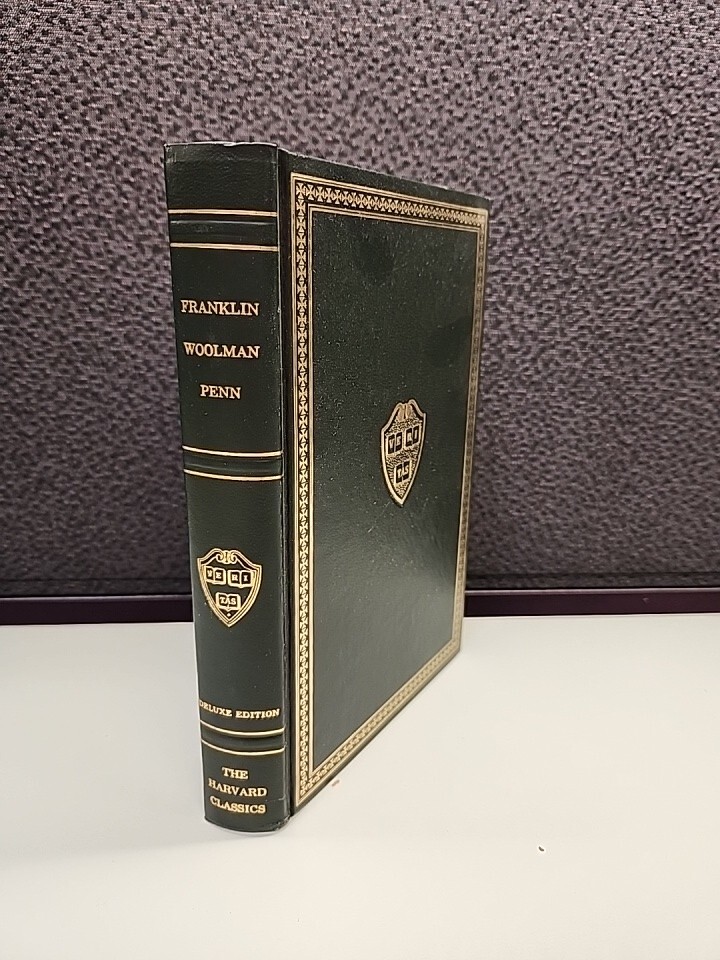 This is a stunning Deluxe Edition of The Harvard Classics, featuring works from various authors including Franklin, Woolman, and Penn. The book is bound in leather and is a limited edition that comes with special attributes that make it a valuable addition to any collection. Autobiographies Include : **The Autobiography of Benjamin Franklin **The Journal of John Woolman **Fruits of Solitude by William Penn Sold As Is – Please see photos for condition. Please contact us with any questions or concerns you have about your purchase.