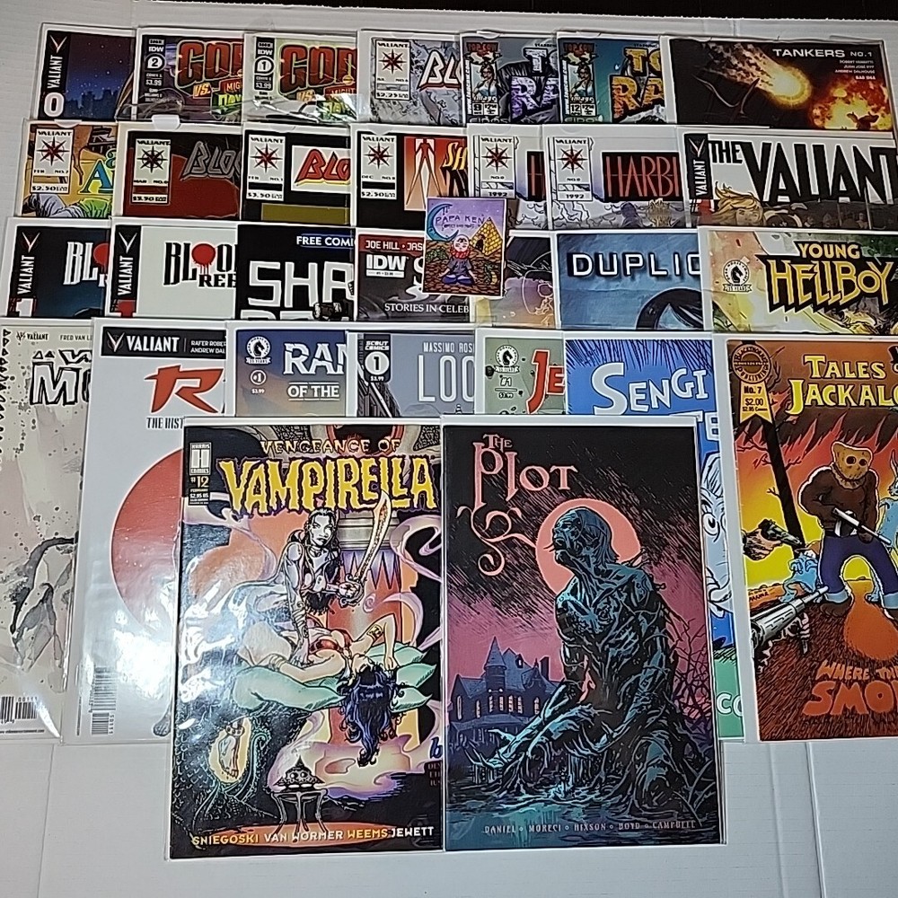Comic Book Lot Of 30 Valiant Vampirella Godzilla Power Rangers Hellboy. Condition is Very Good. Shipped with USPS Media Mail.
