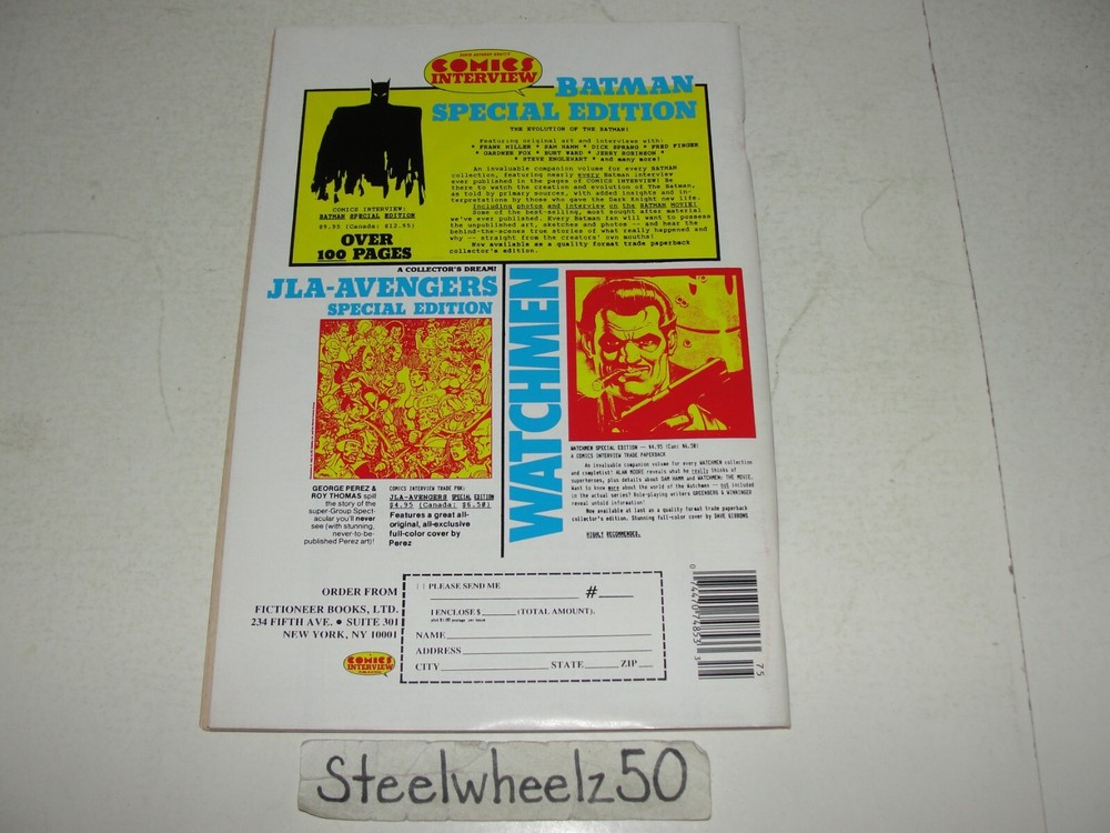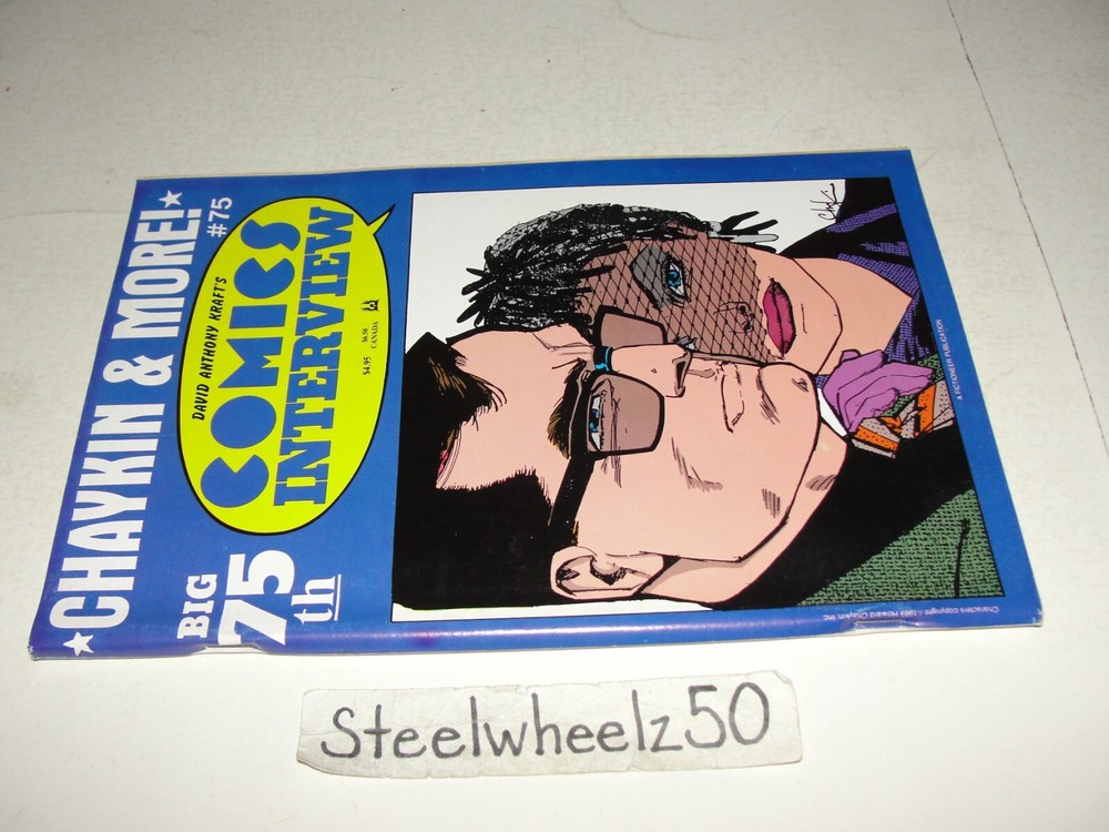 You are bidding on a Comics Interview #75 Comic - 1989 version (actual items pictured)! This auction is for everything shown (see pictures). This issue is in good condition with some wear from reading and damage (see picture)! This issue has some spine stresses, top and bottom spine wear and some back cover scuff marks (see pictures). This issue features great interviews with Howard Chaykin, Gerry Conway, William Stout and Moebius! This issue is out of print and hard to find! A great issue and a must have for any Comic or Comics Interview Fan! Shipping is FREE within the United States (please view the Shipping and Payments tab for shipping rates outside the United States). Please check out my other auctions for more items and I will always combine shipping for multiple auction wins! All items ship with Delivery Confirmation to protect both of us!