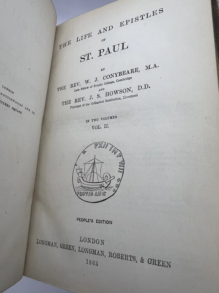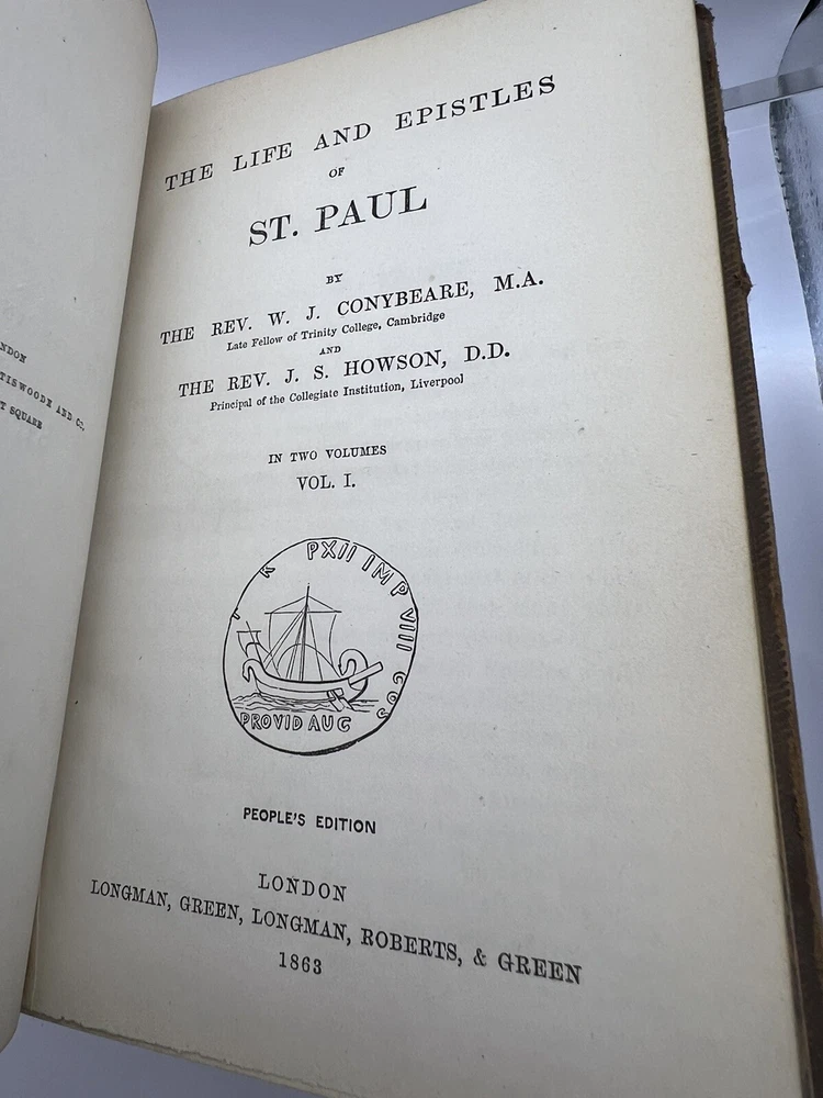 This is a rare and collectible edition of "The Life And Epistles Of St. Paul" by W. J. Conybeare. Published in 1863 by Longman, Green, Longman, Roberts, & Green in London, these books are a valuable addition to any collection of antique religious literature. These books are bound in leather and printed in English, making it a great resource for those interested in the topic of religion and spirituality. The books cover a range of topics related to religion and spirituality, and is a must-have for those interested in the subject. The covers of the books are not attached and thus the price reflects this.