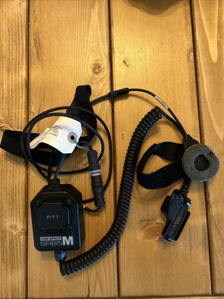 Con-Space SR65M Radio Push-To-Talk PTT w/ Throat Mic & Universal Speaker. Part numbers 0303-09-014 and 1926-01-010....