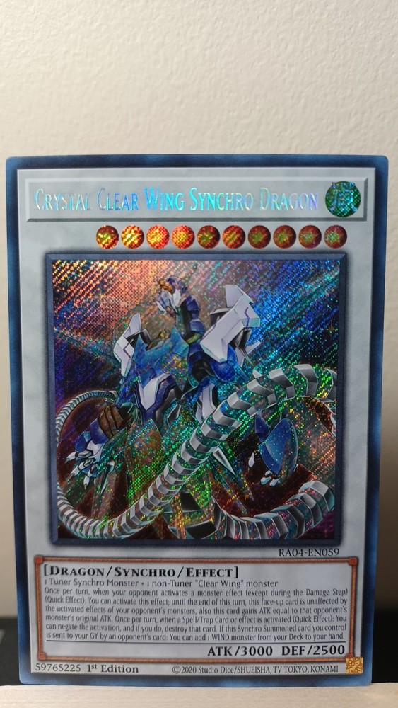 Crystal Clear Wing Synchro Dragon 1st edition Secret Rare from Quarter Century Stampede in NM condition. Please see pictures and feel free to ask any questions prior to purchase. All orders usually ship within 24 hours except on days USPS is closed. Most orders under $20 will ship via eBay standard envelope, orders over $20 will ship via USPS Ground Advantage. We do everything we can to ensure your purchase arrives in a timely manner and in the same condition shown on the listing. Please check out our eBay store as well for more cards and discounts.