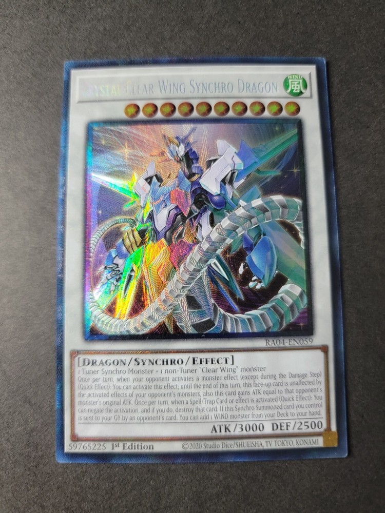 Just got this stunning Crystal Clear Wing Synchro Dragon and wow, the collector's rare stamping looks absolutely incredible in person! The card arrived super fast and was perfectly protected. The seller shipped it immediately and the condition is flawless - definitely one of my favorite additions to the collection!