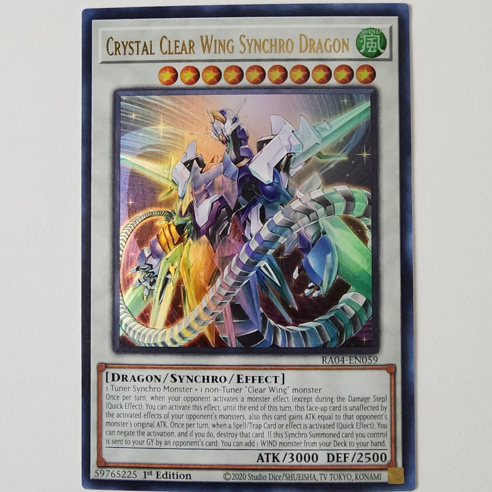 Crystal Clear Wing Synchro Dragon - RA04-EN059 - NM - Ultra Rare - 1st ed Quarter Century Stampede Don't forget to click on the store icon for more great deals on singles, playsets, deck cores, and sealed products!