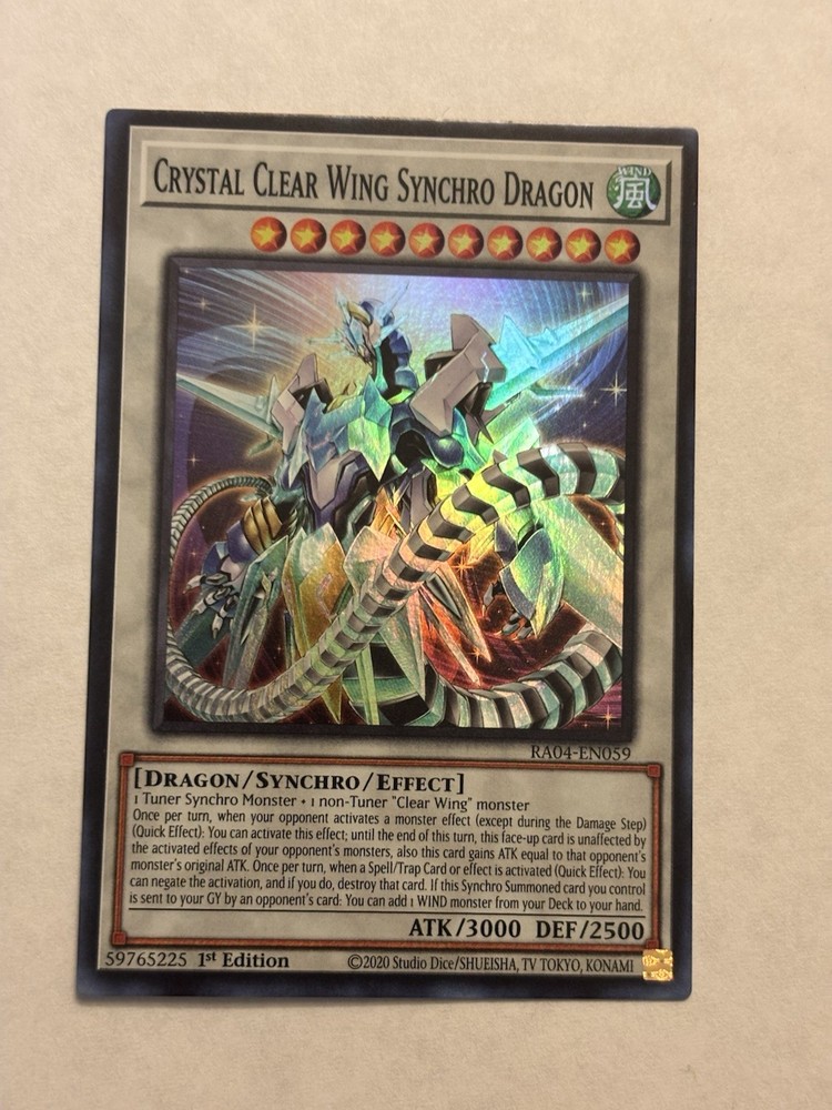 Crystal Clear Wing Synchro Dragon RA04-EN059 - Super Rare 4/11 - yugioh. Condition is Ungraded. Shipped with eBay Standard Envelope for eligible items up to $20....