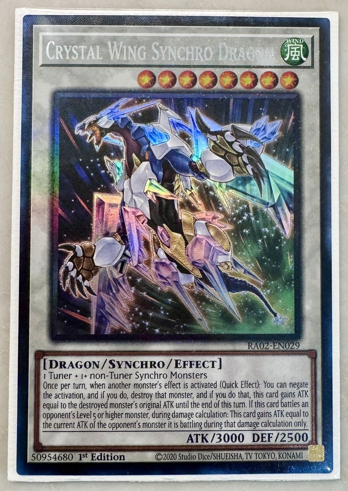 Crystal Wing Synchro Dragon 1st Edition Prismatic Collector's Rare RA02-EN029. Condition is Ungraded. Shipped with eBay Standard Envelope for Eligible Items up to $20.