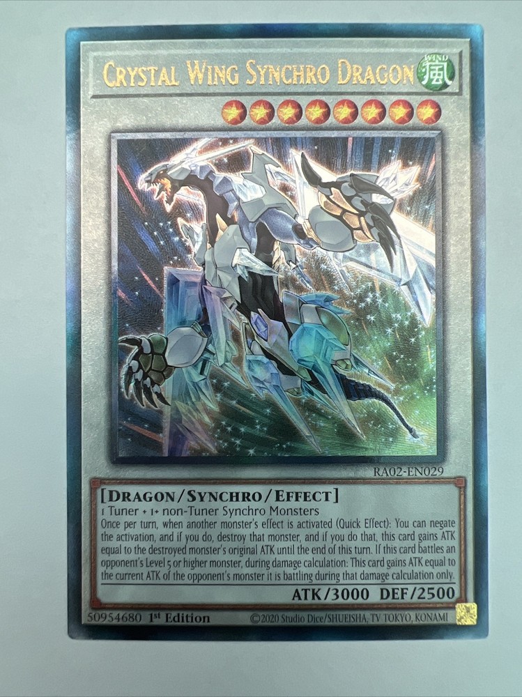 Crystal Wing Synchro Dragon 1st Edition Prismatic Ultimate Rare RA02-EN029. Condition is Ungraded. Shipped with USPS Ground Advantage....