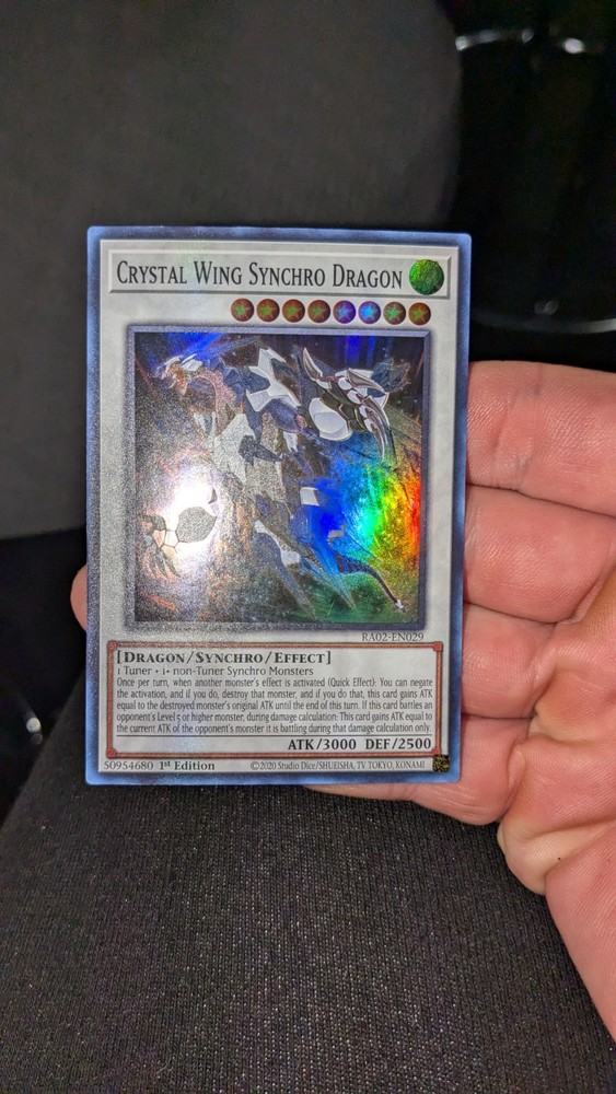 Elevate your Yu-Gi-Oh! TCG collection with the Crystal Wing Synchro Dragon, a prized addition from the 25th Anniversary Rarity Collection II. This card, numbered RA02-EN029, features the iconic Dragon creature type, boasting an impressive 2500 defense and 3000 attack power, sure to make a significant impact in your next duel. The Crystal Wing Synchro Dragon is a Super Rare card that comes as a 1st Edition, reflecting its unique value. With its Effect and Synchro card types, it holds both aesthetic appeal and gameplay potential. It's designed by Konami and is an essential collectible for enthusiasts who appreciate the depth and history of the Yu-Gi-Oh! universe.