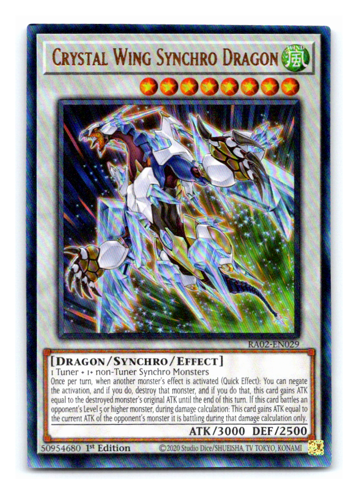 Crystal Wing Synchro Dragon - RA02-EN029 - Collector's Rare - 1st Edition Yugioh Mint Condition Terms and Conditions • Sorry no international buyers • PAYPAL ONLY. Paypal Accepts credit card. • If you have any questions or quieries, just shoot me a message We are not responsible for any lost items during transit. Buyers automatically quality for free tracking when order is over $40. For combined shipping to save on shipping cost, PLEASE commit to the purchase of those items via then select the promotion postage option. AMAZING VALUE ! ROCK BOTTOM PRICE ! 100% AUTHENTIC Buyers automatically quality for free tracking when order is over $40 Items are usually sent securely double sleeved and with thin cardboard paddings if required. Otherwise , You may also add a top loader to your purchase ! Toploader: https://www.ebay.com.au/itm/352812399479 Shipping fee is $1 for the item but it will be deducted when you check out using combined shipping !